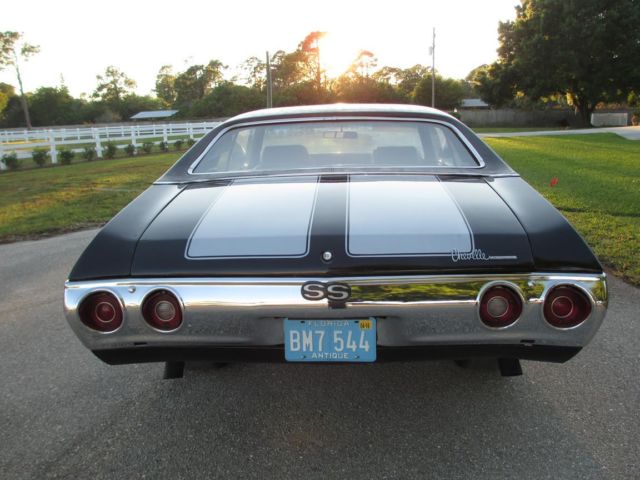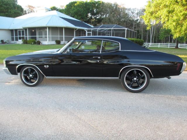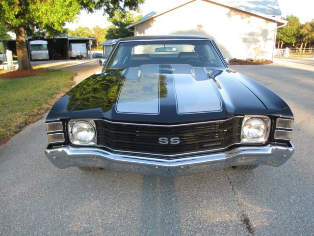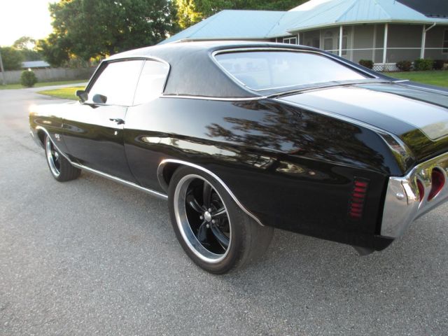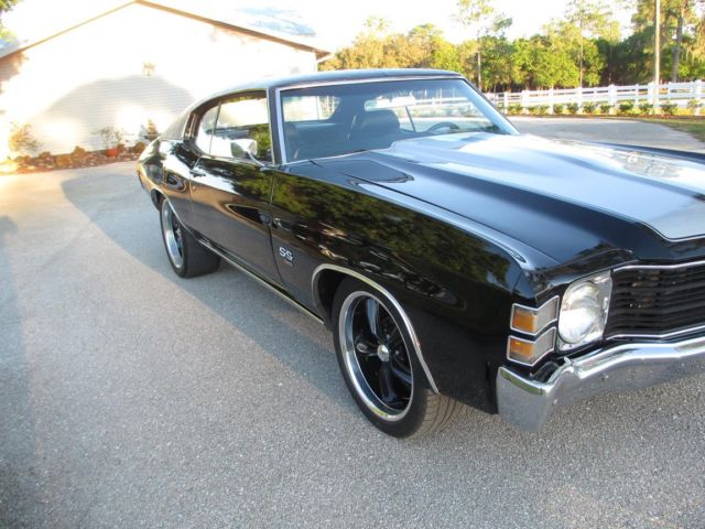 1971 Chevelle SS Triple Black & Vinyl Roof. Cowl Hood (Clone) Buckets with Console 454 with Headman Headers and Electric switch to open headers. Posi 10 bolt rear end with 3:73 gears PS and the motor has been freshened recently. Has a couple of bubbles around the chrome on rear window and the rear tires will need to be replaced soon but has a couple thousand miles left fronts are in great shape. Trans has a shift kit making this a nice ride and sounds great this one is ready for daily driving and is that nice for car shows. The interior is in great shape no tears looks very nice. This car at one time was a 4 speed from the factory and the clutch pedal still attached but hidden up against fire wall very easy to convert back to that if desired. I have this car posted for sale locally therefore can end this listing at any time. Buyer must deposit $1000. 00 within 24 hrs of winning bid and responsible for shipping. can be viewed at cars location and will assist with shipper loading if required.
