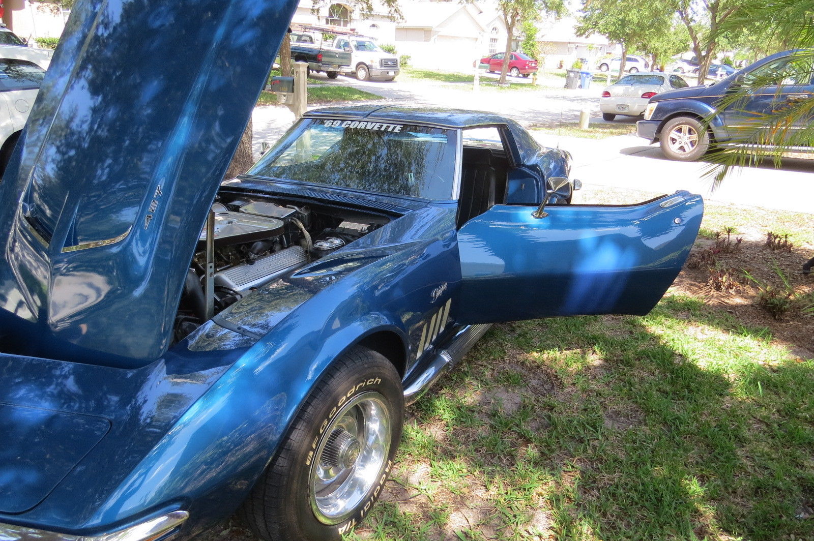 L68 427 – 400 HP – Tri power – 4 speed – T-tops – Le Mans blue w/black interior - No A/C. No PS or PB – All the power is under the hood – New dash pad - New door panels – New T-top gaskets – New valve covers – New starter (not yet installed) – New front brake pads - All vacuum points work - Always well maintained while under my ownership This L68 ’69 Stingray has a lot of life left in her. I’ve owned her for nearly 8 years and have satisfied a lifelong dream of mine. Now it’s someone else’s turn. I’ve put less than 2. 00 miles on her and she’s been garaged and well maintained during my 8 years. She’s only seen rain once and boy oh boy were we both upset!! It’s been said that the ’69 Stingray may be the “new ‘67” with some time. Be smart and buy while she’s still affordable. Have questions? Feel free to ask. Serious inquiries only please!!