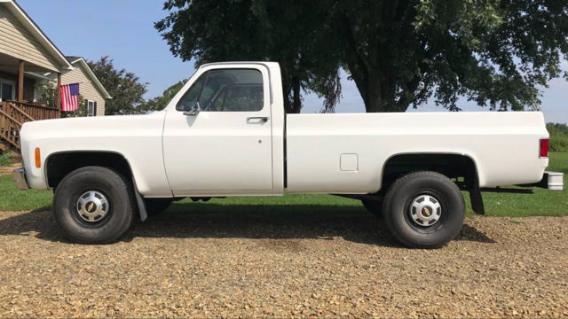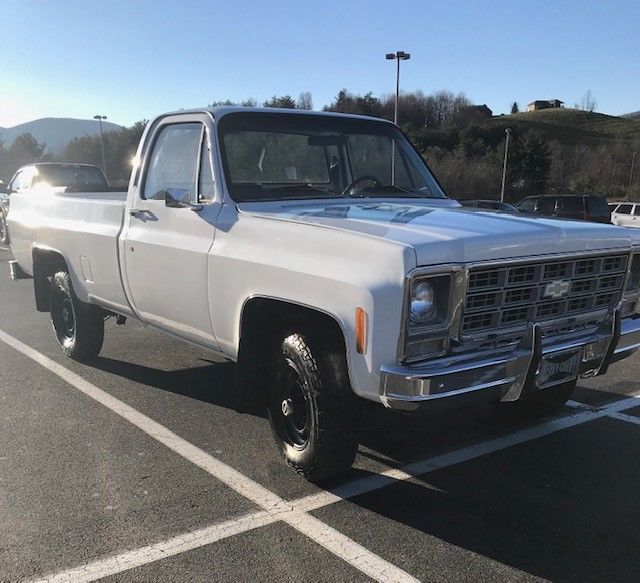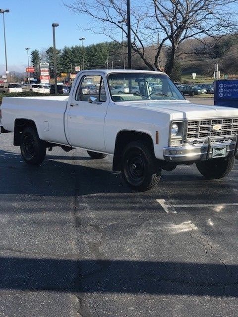1977 K20 3/4 ton 4x4 Pickup. 350 4 barrel (quadrajet). SM456 4 speed. NP 205 Transfer. 4.10 axles. Dana front and Corporate 14 bolt rear. Not perfect but very clean for the model. Restored by previous owner several years ago. Truck came from NC Piedmont area. Paint is holding up good but could use minor touch up and detailing, Frame is as clean as outside of the truck. Bare bones model, manual windows, no AC. Power steering and power disc brakes. Everything on the truck functions well. AM/FM original radio still works. Transmission and transfer shift well. Throwout bearing is a little noisy, but hasn't worsened over the last 6 months and clutch functions well. New Cooper AT/3 tires. New Shocks. New windshield. Newer model bed with galvanized inner walls installed at time of restoration. Some scratches and a few spots where the paint pulled away from the galvanized inside the bed, but not beat up. New 22 gallon fuel tank on passenger side, doesn't have one installed on the drivers side, I don't drive it enough to need 2. All rubber good, no leaks. New carrier bearing in driveshaft. New Universals (3).Not a show queen, but a very capable hop in and drive 42 year old truck. Always starts, idles correctly, choke works correctly. Steers, stops and drives with no quirks. Parking brake functions well. No vices. I have driven this truck on several 3 hour round trips with no issues at all. Remember it has no overdrive and 4.10 gears so 70 is revving a bit. Clean title in my name. I will help buyers arrange shipping or pick you up at the nearest airport and you can drive it home (but I wouldn't take the interstate all the way).