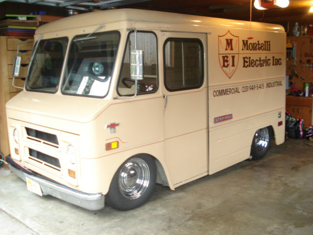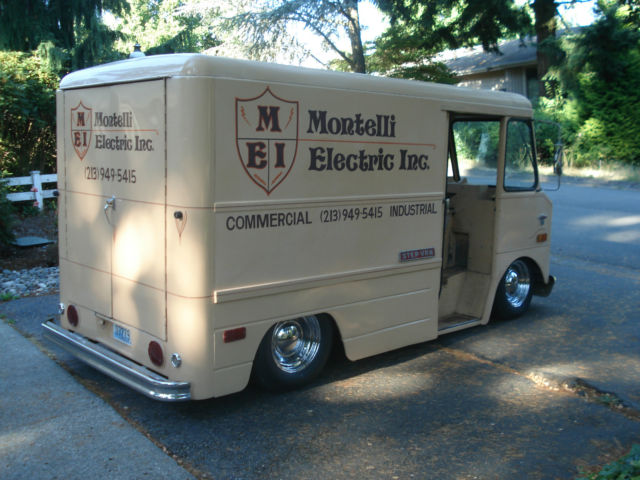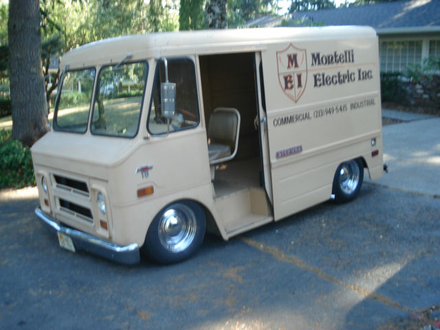 1970 Chevy Step Van ( The shortest one made. Bumper to bumper 14 ft. ) Originally from California. (I still have the black plates for it) Was used as an electricians Van for over 20 years. Still bears the original company name and phone # on the side of the van. This wasn't recently painted on to look old. This is the real deal. The van is a light shade of tan with a brown and orange logo. The Van does have small scrapes. scratches and dings. It has a great aged look to it. The original owner kept in under a car port when it wasn't being used. This has kept the paint from being sun baked. The original owner also kept all his receipts from the time he got it. everything from tune-ups to replacing the engine to replacing a side window. I have 2 full 3 ring binders of his and my receipts. Engine. Is a 250 Straight six cylinder. RUNS GREAT !! Odometer reads 34. 00 miles. that's obvious false. I really don't know the actual miles on the engine. but. I did do a compression check and all the cylinders had great compression. I had a rebuilt carberater installed and a new distributor and electronic ignition installed. I also pulled a power steering unit out of a 1969 chevy C10 pick up. which is installed in the van as well. It does have a small leak coming from one of the hoses. I believe its coming from a fitting. but. Im not sure. I just wanted to mention it. nbsp;so there are no surprises. When I checked the numbers on The block. It is from 1979. So its not the original engine. But it does run well. Transmission. Has the 3 on the tree. clutch works great as well as the shifting. Interior and Electrical. The interior is very basic. but. its all there. There's only 1 seat . nbsp;reupholstered in the original brown. I did replace the steering wheel with a Cal 500 flat wooden steering wheel. ( period correct) looks good too. I have the original steering wheel that will go with the van when sold. On the electrical side. Here is what works. The headlights. the dash lights. the interior lights. brake lights. blinkers and wipers. Everything works except for the brights on the headlights. I think its the switch on the ground is bad? Im not sure. And the horn. I never could find one. I did trace the wire. which goes all the way to the upper left of the radiator. And still no horn. so I pulled a horn out of a 1969 Chevy C-10 pick up and tested it on the horn wire. and it worked. but I never installed it. But it will go with the van. Heater also works great. Suspension. Has a Stage 2 Porterbuilt kit with a Dropmember Touring edition and a mustang rack and pinion installed in it. And 2. 5 drop spindles with power disc brakes. Rear brakes are drum. Also has a Ride tech digital ride Pro series with one compressor and a 5 gallon air tank. Its basically set up to be as low as I could get it. with out having to cut up the van. Its basically resting on the inner fender wells when lowered. The body. Has small scratches. scrapes and dings/ but does not have any rust. very solid body. And the old school graphics. doesn't get any better then that. Wheels and Tires. 15 X 7 up front with 215/70/15 Tires. 15 X 8 in the back with 235/70/15 TiresWhat the van Needs. after installing the drop spindles. I never got the front end professionally aligned. nbsp;even though I drive it all over the place. Just thought I would mention it. And the Power steering pump. works fine but has a small drip. Other then that. The Van looks and runs great. And comes with a clear title in my name. Shipping and payment . A $1. 000. 00 non refundable Paypal deposit is due within 24 hours of the end of auction. The rest is due within 7 days of the end of Auction by Bank Transfer. I will provide you with a routing # And If you are shipping the Van. It is your responsibility to take care of the logistic side of things. but I will gladly help when your shipper arrives to make sure the van gets loaded safely. PLEASE READ before bidding. If you have zero feedback. please don't bid. It will not be accepted. And if you are a qualified bidder. don't bid unless you have the money. and please get permission from your wife. this is going to be a hard sale. theres only 1 seat. where is she going to sit ? Im telling you. shes going to hate it. Get your story straight before you ask her. Trades? No. I have way to many projects as it is. Absolutely no trades. No warranty implied. sold as is. On Feb-15-15 at 19:31:57 PST. seller added the following information: 1970 Chevy Step Van ( The shortest one made. Bumper to bumper 14 ft. ) Originally from California. (I still have the black plates for it) Was used as an electricians Van for over 20 years. Still bears the original company name and phone # on the side of the van. This wasn't recently painted on to look old. This is the real deal. The van is a light shade of tan with a brown and orange logo. The Van does have small scrapes. scratches and dings. It has a great aged look to it. The original owner kept in under a car port when it wasn't being used. This has kept the paint from being sun baked. The original owner also kept all his receipts from the time he got it. everything from tune-ups to replacing the engine to replacing a side window. I have 2 full 3 ring binders of his and my receipts. Engine. Is a 250 Straight six cylinder. RUNS GREAT !! Odometer reads 34. 00 miles. that's obvious false. I really don't know the actual miles on the engine. but. I did do a compression check and all the cylinders had great compression. I had a rebuilt carberater installed and a new distributor and electronic ignition installed. I also pulled a power steering unit out of a 1969 chevy C10 pick up. which is installed in the van as well. It does have a small leak coming from one of the hoses. I believe its coming from a fitting. but. Im not sure. I just wanted to mention it. nbsp;so there are no surprises. When I checked the numbers on The block. It is from 1979. So its not the original engine. But it does run well. Transmissi