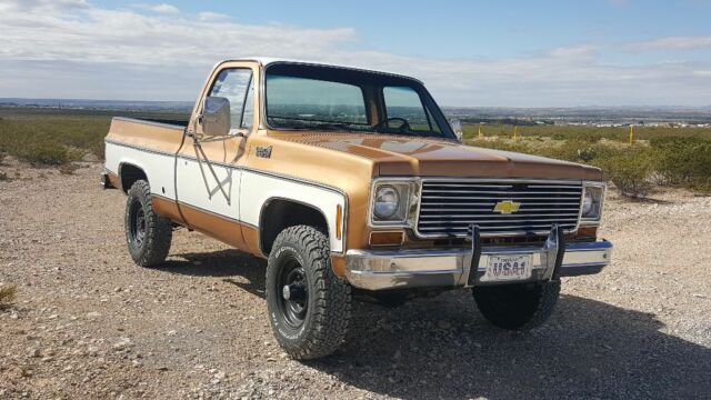 Short bed 3/4 ton suspension 4x4. Was originally a 2wd camper special. Cab was removed and put on a shortbed 4x4 chassis. 3/4 ton suspension was swapped over. Has a 14 bolt corporate rear diff and Dana 44 front dif, both with 4:10 gears. Also has the larger 13inch heavy duty rear drums, disc brakes up front.New GM 350 HO crate engine with less than 1000 miles.New exhaust, full length hedman header, exhaust pipes with awesome sounding magna flow mufflers.New front brake linesNew water pump, thermostat and hoses and radiator capNew power steering pump and beltsNew interstate battery and cablesNew ignition system HEI,plugs and wiresNew interior and door rubber replacedNew windshieldNew BFG tires with stock trims and hub capsNew lights and parking and rear signal lensNew body moldingNew line ex bedlinerRebuilt th350 transmission and resealed transfer case.What it needs...parking brake and horn.No ACBody is rust free but does have some dings.It's not a show truck but it's a solid body and frame and mechanically solid.A true dry weather southwestern ranch truck from Southern New Mexico, currently located in West Texas.