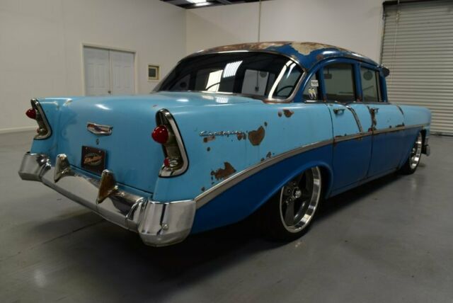 The "Tri-Five" Chevys have long been a fan favorite amongst all classic car enthusiasts. The styling of each year is almost certain to attract everyone to either a 1955, 1956, or 1957. Some folks prefer all three! Whatever your preferred Tri-Five is, this 1956 210 has many attributes and upgrades sure to reel you in. Don't let the exterior fool you; inside and underneath this 210 is hopped up, cleaned up, and ready to cruise with the whole family! The... most unique feature of this car is the exterior patina. While it isn't for everyone, this is one vehicle that it really looks great on and shows the history of the vehicle. Some feel that patina shows the age that the vehicle has earned, and that is certainly the case with this car! There's just something about the untouched exterior that makes this car feel like a time machine to when it was just and old used car. The stance and upgraded wheels bring it back into reality though, as it is clear from a second glance that this old Chevy may be just a little more built than the exterior would initially lead you to believe. As crusty as it first appears, the body is actually quite straight and were someone wanting to fully restore it this could be a great candidate with some metal work. Aside from the subtle addition of the wheels and the lowered stance, there's not much to make onlookers think there's something special going on with this rusty 4-door...and that's kind of the point! Whether you open the hood or the door first, it immediately becomes clear that this car is not what you may have initially perceived it to be. The interior is mostly new, with freshly recovered seats and door panels. While the interior is clean, comfortable, and attractive, just enough of the original wear and patina has been left to retain some of the vibe given off by the exterior. The aftermarket steering wheel matches the interior colors, as does the upgraded tilt steering column. It could be considered the perfect blend of old and new! If the new interior pieces alone aren't enough to convince you this isn't grandma's old car, the 5-speed shifter sticking out of the floor ought to be! Under the hood is a new Chevrolet small block ZZ4 crate motor seated in a freshly painted engine bay. With an aluminum radiator sitting up front and the engine dressed up subtly with black accents, it is easy to tell this is no junkyard build. A shiny new master cylinder and brake booster stick out of the firewall, hinting at the front disc brake setup underneath this car. The transmission is a 5-speed Borg-Warner T-5, a worthwhile upgrade for increased driveablity. If you're looking for an affordable rat rod that the whole family can enjoy, this '56 210 would be a perfect candidate! Or, if you just want to cruise on the weekends with all your friends, this car would seat 4 quite comfortably. Whatever the intended purpose may be, this car is set up right and the unique patina will set it apart from just about anything anywhere it goes. DOES IT WORK? Air Conditioning N/A Heater YES Speedometer YES Oil PSI Gauge YES Temperature Gauge YES Fuel Gauge YES Tachometer n/a Wipers NO Horn NO Radio N/A Headlights YES Tail Lights YES Brake Lights YES Reverse Lights NO Turn Signals YES Keys â€" Ignition, Door & Trunk YES Runs & Drives YES