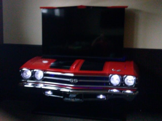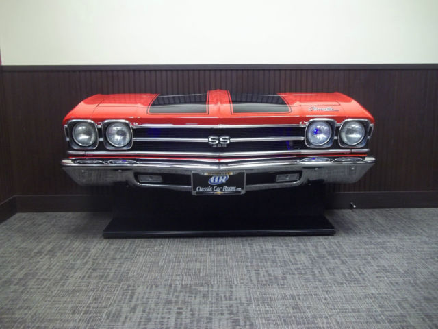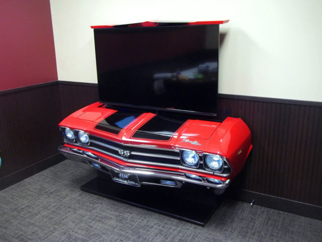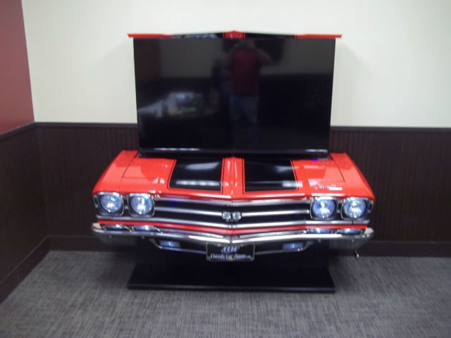 1969 Chevy Chevelle SS 396 TV Lift Display built by Classic Car Room for the Ultimate Man CaveOne of a Kind 1969 Chevy Chevelle SS 396 front-end entertainment TV Display professionally built by Classic Car Room from real car parts. no fiberglass or plastic copy's. This Chevrolet Chevelle SS396 TV is the ultimate man cave piece with hidden 60" Vizeo LED TV That raises from the hood by remote TV lift. In grill color remote control programmable LED lighting that you can set color or have different strobe modes. Opening hood for DVD and controller storage which can open at any time. tv up or down. Remote control headlights. and park lamps with dimmer. Lower glass shelf for components. New chrome bumper and emblems. all new grill and lamp parts. Only 29" wide so it will fit through most doors. Size: Width- 74". Depth-29". Height- 36" (TV down). 70" (TV up)Please watch video to see in action: Classic Car Room professionally builds classic car furniture and have sold items at Barrett-Jackson the last two years. nbsp;recently sold our 1967 Shelby "Eleanor" TV lift display. We build furniture out of any make or model of car to customers specifications such as TV lifts. couches. bars. wall hangings. and much more. Our TV lift displays are patent pending. We build from real car parts that were saved from the crusher or bought new. We build to the highest quality with steel modular frames and real car parts. No fiberglass or plastic copies. no wood frames. If you have any questions please give us a call at 763-772-5052. Important Please Note:This item is for sale in multiple locations and seller can end auction at any time if sold. Shipping Info:Item is available for pick up for no chargeI will crate in wooden crate for shipping for crating charge of $200. Shipping to all lower 48 states is $600 plus crating charge. International buyers shipping can be arranged by seller or buyer at cost plus $200 crating charge. Questions or more info call Classic Car Room (Dave) at 763-772-5052.