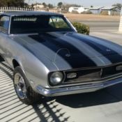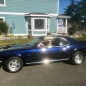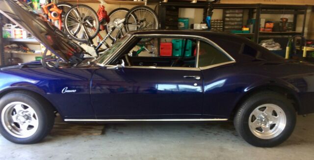 1968 Midnight Blue Camaro with painted on black racing stripes. 327 engine with a 350 turbo transmission. Cragar true weld wheels, no bondo, straight body, no noticeable body damage, small tick tack stuff. No tears in interior. Windows all present but don't go up and down correctly.