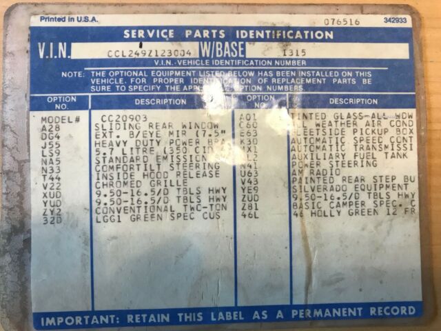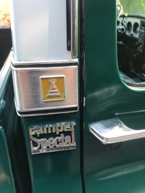 SURVIVOR! VERY CLEAN! C20 camper special with original interior and paint. Oregon truck that has been garaged its entire life. Zero rust except for minor surface knicks in front of hood and misc minor blemishes. I have decided to keep it in its original paint since it still shines nice. Odometer shows 51k. Not sure if correct but judging by condition of original interior, rattle free body while driving and clean original paint its definitely a very cared for vehicle. It was sold with full options including cruise control and the famous dual tank set up. She carries almost 50 gallons of fuel in both. The truck has an electronic switch that transfers which tank feeds the engine.TO MAKE IT PERFORM: The engine was rebuilt and now has a performance cam, edelbrock riser and 4 bbl carb, ACCEL electronic ignition, new water pump/fan, new alternator, new plugs and cables, racing air cleaner, Headers and new dual free flow exhaust. The engine rumbles deliciously thru those long pipes. AC works great and even the original am crackles to life. She has a newer sound system w speakers hides behind bench. You will not find a more original c20 for sale. She cruises down the highway and can be driven across country.