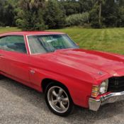 The 1970 Chevrolet Chevelle coupe was one of the baddest cars on the streets, and it's one of the most desired muscle cars today. So finding one that's less than 2,000 miles off of restoration with the right Super Sport look, upgraded overdrive transmission, A/C interior, and serious big block power seems to be the best way to rule the neighborhood. This coupe was professionally resprayed the 1970-correct shade of Cranberry Red for boldness. The legendary shape of... the 1970 Chevelle looks like it was tailor-made for the black SS stripe package, and the black vinyl roof is a great premium touch in this very sporty package. It has an overall aggressive look that freshly re-dipped chrome bumpers can't even outshine. The power bulge of the cowl hood is a must-have on a Chevelle, and real muscle car fans know to look for the proper working induction flap. This one looks extra mean with the blacked-out grille, hood pins at the corners, and blacked-out rear panel. The final piece to this package are upgraded 17-inch American Racing Torq Thrust wheels. It fits in perfectly with this shining coupe, and it sends a message that this is an upgraded package that also respects classic muscle car history. Just like the exterior, the interior was given the right muscle car makeover. Black vinyl is what we all love to see, especially when it matches the exterior stripes. The seats, carpets, dash, gauges, console, and headliner are all freshly done as part of this recently restored package. So you know it's the kind of hardtop you'll show off with pride. It gets the details right with the Chevy three-spoke sports steering wheel, horseshoe shifter, and full U14 round gauge package with large speed and tach â€" even the clock works! The stereo is a retro-style unit with USB port, so you get upgraded tunes without jeopardizing the vintage atmosphere. And the air conditioning is blowing nice and cold, so feel free to go cruising with all the windows down even in the summertime. This is the kind of motor that will make you proud to lift the hood at car shows. The big block 396 cubic-inch V8 not only does the big stuff right like the orange block paint, air grabber w/callouts, and bright valve covers, but also it's presented exceptionally well. That's thanks to getting the details right like using fresh hoses, wires, and clamps. And of course, muscle car people love to point at the correct diaphragm that seals the air intake to the proper cowl induction hood. But when you look beyond the nice presentation you'll feel a meaner attitude. The big block inhales deeply through a Holley four-barrel carburetor and Edelbrock Performer intake. And it exhales with authority with long-tube headers feed the rumbling stainless dual exhaust. Plus, the total power package has better ratios thanks to the upgraded to a 700R4 four-speed automatic transmission that includes overdrive. A Bowler adjustable lockup controller is located under the dash. Control also stays well in hand thanks to power steering, power brakes w/discs up front, and grippy modern Falken tires. This is the big block Chevelle and SS tribute done right. After all it's the fresh build that leaves you wanting for nothing in both power and comfort. So don't let you ideal American muscle machine slip away. Call today!!!