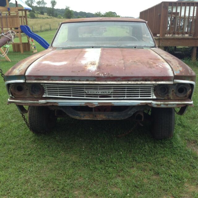 1966 Chevy Chevelle for sale born in Atlanta, GA and raised in Radford, VA. This car was taken off the road in 1985 to restore. About 3/4 of it was walnut blasted, and the car has been stored in a garage in Shawsville, VA until the day I bought it. I have no time to finish it, too many projects already. As you can see in the pictures, the floors are perfect in it inside of the car. I just installed a new 3-piece trunk floorpan with body to frame braces, installed left and right lower rear quarters patch panel with floorpan drop downs, iinstalled new patch panel underneath the windshield, and the rear glass does not need one because it is nice and solid. 98% of the metal work is finished. The front fenders on both sides will need the lower patch panels. The hood is salvageable, but it has some rust on the front of the hood. The original quarter panels are nice and straight and the top is good, not dented up. The frame is clean and not rusted out. It appears to me that it has been hit on the right front at some time, and the front frame horn appears to be bent in about an inch. The engine is a 350 cubic inch, that is a 4 bolt main, that came out of a 2 ton truck. The engine was rebuilt approximately 8 months ago, and removed from the truck because it was a total wreck. It has a 350 automatic transmission, was told it came from a 74 nova that was hit in the rear end,so i dont know any thing about it, it has a one legged rearend not sure what gear it is, The engine is just sitting in the car, not bolted up, with no starter, no carburator, no distributor or plug wires. The dash is original, unmolested, and it has the original glovebox and radio still in place. also all the glass is there the windshield is cloudey all the way around the edges will need replace all windows rool up and down with ease, I'll be leaving on vacation on July 3rd in the evening and will be back on July 7th late evening. I may have missed something, so either call me at 276-733-4818 or write me through Ebay. Thanks, Gene