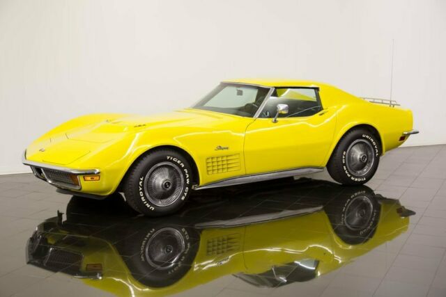 Hard to find color combination on this very original, number's matching Big Block Corvette! This two owner Stingray comes with just 42,919 original miles! The last year for chrome bumpers and loaded with options to include air conditioning, power brakes, power steering, removable T-Tops, and more! Chevrolet was coming out of short production year for 1971 and found eager customers ready to make way for showrooms in 1972. It would mark the final year of the desired chrome bumpers front... and rear, concealed wipers under a vacuum operated door, and the exit of traditional SAE Gross horsepower, but now SAE Net ratings determined after things like the air cleaner, transmission, and rear axle loads are factored in. Horsepower was identical to 1971, although printed output was significantly lower. This third generation 1972 Chevrolet Corvette Stingray Coupe is finished in factory code Sunflower Yellow over factory Black Vinyl interior and is an exceptional representation of what is quickly becoming one of the most rapidly appreciating segments in the Corvette collector car market. Featuring desirable options that include number matching 454ci-4bbl V8 engine, automatic transmission, power steering, power brakes, factory air conditioning, tilt-telescopic steering wheel, Soft-Ray Astro-ventilation windows glass, original full wheel covers, white letter tires, Corvette rubber floor mats, 3.08 posi-traction rear axle ratio, Delco AM/FM radio, and chrome valve covers & air cleaner lid. This April 1972 production Coupe is a well optioned and superbly drivable car! Having only two owners from new, this example hails from Lowell, FL with only 42,919 actual miles! It retains a no-hit, factory body showcasing one older repaint completed in the early 1990's. Freshly serviced in February 2018 to include new mechanical fuel pump, brand new brass radiator with hoses & clamps; completely rebuilt air conditioning system to include new compressor, receiver drier, expansion valve with modern POA update & conversion to R134a; new spark plugs, cap, rotor, & points; new valve cover gaskets; new transmission output shaft seal, pan gasket, & filter; new exhaust manifold gaskets; new T3 headlamps, along with all new engine fluids. It is ready for the next owner to enjoy and show! It comes very nicely detailed throughout and retains all original storage compartment stickers, factory tire changing equipment including the spare tire, as well as its original factory-issue all number's matching drivetrain. Please do not hesitate to contact us with any questions about the car or to discuss worldwide shipping options.