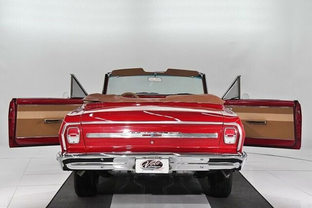 Rare Nova convertible has had a ground up custom pro-touring/show car build. Many mechanical upgrades make it a pleasure to drive. I sold this car 6 years ago to a couple that pampered it. She even hand made seat covers to protect the seats. They won over 40 trophies! EXTERIOR: Slick! Exceptionally clean body. It's straight with no issues. The panels fit square and flush. Doors click shut. Has a metal cowl hood. Paint is a polished gloss red. Hand... pinstripe was tastefully added. Jambs are slick. New chrome and trim. Even the window frames are rechromed. All new smoked glass including windshield. Taillights are LED. The 15 inch aluminum wheels were the perfect choice. Has Goodyear tires. The tan power top adds class, it's a rich German cloth. INTERIOR: Very classy, full custom interior. Rich colors on the upholstery. Custom bucket seats are both full power. Has a real nice console with cup holders. The dash is beautiful. The metal is painted red as slick as the outside. Highly polished aluminum instrument bezel has white face gauges. Modern a/c controls and nice oval aluminum vents. Tilt steering column is chrome with a custom wheel. Wiper and headlight controls are hidden under the dash. Custom 1 piece carpet fits real nice. Has Dynamat under it. Has custom billet pedals. Everything is new- mirrors, handles, armrests etc. Has retractable seatbelts. JVC stereo with aux plug. Speakers are molded into the kick panels. ENGINE COMPARTMENT: Wow! That's what people say when you open the hood. Polished parts and gloss paint fills the compartment. Completely reconstructed inner fenders, tubular support bars. It's all painted gloss red. Claimed to be a 350 crate motor. Upgraded with aluminum intake, Edelbrock carb with electric choke, Accel electronic ignition and coated headers. New power brake system, new power steering. Vintage Air heat and a/c system. The hoses are hidden behind the inner fender. Has aluminum pulleys. Runs cool thanks to an aluminum radiator with electric fan and a polished overflow. It is show quality. TRUNK COMPARTMENT: It has been boxed and upholstered to match the interior. The battery was relocated to the trunk behind a panel. Bottom of trunk lid and jamb are slick, new weatherstrip. A car cover and seat covers are included. UNDERSIDE: It has had substantial upgrades. This unibody design was given a frame with 4 welded in frame rails. This makes it strong and handle better. Up front a complete TCI steering and suspension unit was installed. Features include tubular control arms, rack & pinion steering, sway bar and disc brakes. Bottom of the motor is clean. Trans was upgraded from a 2 speed auto to a 700R-4 overdrive auto for highway cruising. In back it has 10 bolt rear, air shocks and replaced fuel tank. E-brake cables are hooked up. A dual Flowmaster exhaust system sounds great. Only 5,916 miles since the ground up custom build. I know quality and this car has it. Tastefully done, functions fantastic. Nothing to do but enjoy! I, Jay Grams, take pride in personally writing the descriptions for virtually every car for about the last 30 years now. A significant amount of effort goes into fact checking. What I am offering is my professional impression of the vehicle. Our salesmen are happy to assist with descriptions and making sure your questions are answered. One great suggestion is letting us do a walk around video that explains the car's condition in detail. Don't be intimidated, contact sales now for a no pressure, no hassle experience! 815-323-6536 9-5 central Answered ASAP Air conditioning Power steering Rack & pinion Power disc brakes Power top Power seats Smoked glass Custom suspension Cloth top Aluminum wheels Cowl hood Hand Pinstriped Console Tilt deluxe wheel Stereo system