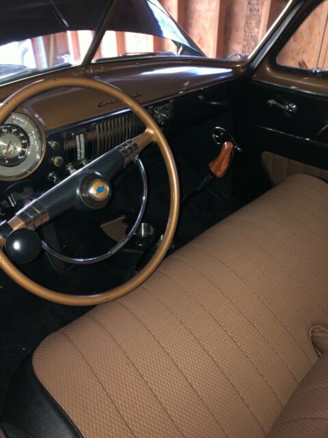 1949 Chevy Deluxe Rat Rod, "Whiskey Plateâ€Stock drivetrain, 6 volt. Odometer shows 91,000 which seems about right. Aftermarket 3 speed on floor. Everything works with the exception of the gas gauge and radio. Runs excellent, doesn't smoke. Factory rear skirts. Body is not perfect, previous bodywork and driver quality paint, although it does present well. Now, the fun stuff, new brakes throughout, new Coker wide white radials, 2 1/2" dropped spindles in front, lowering blocks in rear, chrome valve cover, which, when I changed it out, the valve train is spotless, no sludge buildup at all. Rebuilt head?, new plugs, wires, points, high output coil. Stunning complete custom interior and trunk by Premier Upholstery in Rogers MN in 2016. Featuring hidden led accent lighting in the interior and trunk. Is this a Rat?, if it is, it's a nice one, maybe more of a survivor that's been maintained through the years. This car gets ALOT of attention, especially at night! Simply don't use it enough. Even my wife said she'll be sad to see it go. Sorry, no trades, and I don't need help selling. Thanks for looking!