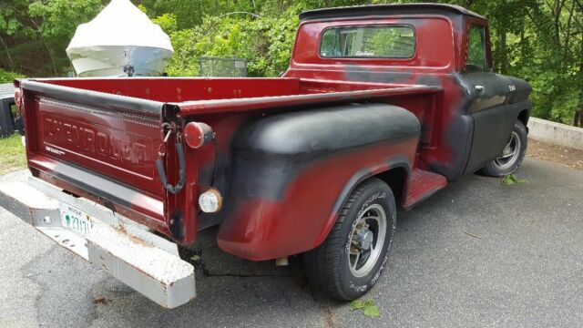 1965 Chevy C-20 pickup it has late model center bolt valve cover small block with a turbo 350 tranny has custom wheels white letter tires with plenty of meat left on them. 4 wheel power drum brakes. Truck came from Florida and has a nice solid frame. Engine has some aluminum aftermarket pulleys, Chrome water pump, Edelbrock Aluminum Intake practically brand new Edelbrock carburetor, Chrome alternator bracket, valve covers, and air cleaner,they are starting to get very light surface rust, should clean up nice.Has headers, dual exhaust with Flowmaster Mufflers, sounds really good motor sounds like it may have a cam in it. Interior is in nice shape perfect bench seat,fuel tank behind seat in excellent shape. Floors are mostly solid except for a little holes on the driver and passenger side,was going to do little repair and seal entire floor with por-15. Bed rails and wood all there but some of the wood started warping - easy fix. As shown in the pictures. Could fix little things here and there or just drive the way it is either way it'll still be a cool little hot rod or rat rod truck just in time for the car shows and cruise nights.