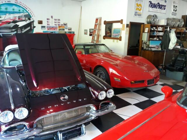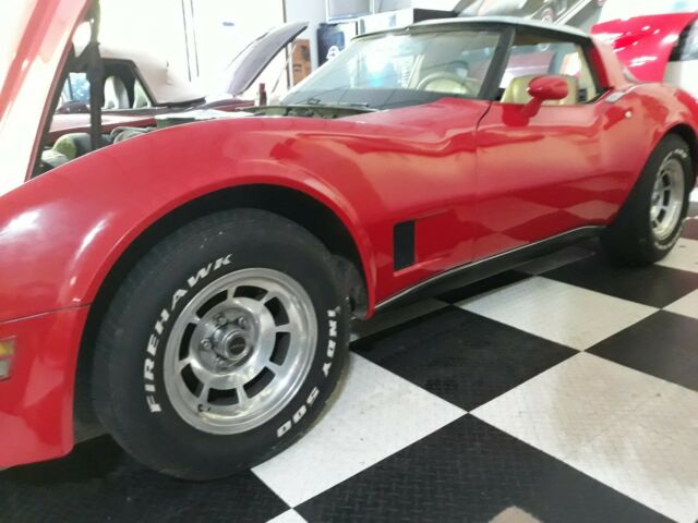 1980 Corvette Red L-48 350 ci v 4 Speed Glass T Tops low Mlie car very Clean interior carpet door panels carpet leather dash steering wheels the paint is good look to orginial will buff very nice wheels and good/tires engine runs good brakes shocks springs are good power windo, steering air condition runs and Drives
