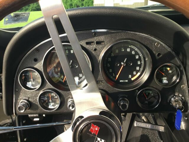 427/425 HP, #'s match, body off restoration, excellent fit and finish. 300 miles since restoration. Very rare triple black car! Trim tag, VIN tag and engine pad verified original by Bloomington Gold judge 6-21-19. All original window glass, power steering and brakes, close ratio 4 speed, tinted glass, transistor ignition, positract axle (411). Original jack, spare tire and wheel. VERY nice car with a reasonable reserve. Call Chris for more information, 816-564-3522