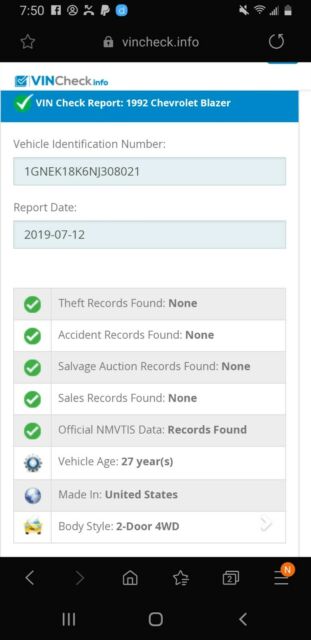 1992 Chevrolet Blazer for sale in Elyria, Ohio, United States