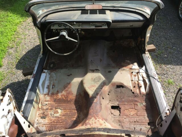 I sold the front bench seat and bought a set of what I was told are ’62 buckets that need re-upholstering.I am limited to 24 pictures, but can provide more at your request. Other pictures I can provide include inner doors, bumpers, glass, different angles of the hood and trunk, fenders, bucket seats, VIN and Trim Tags, Frame, both Door Panels, both Rear Bolsters, and other parts as well. Theconvertible top frame is intact, I assume that the power top motor will need to be rebuilt.Other parts include the drive shaft, fuel line, steering box and linkage, I should be able to find the front grille and headlight trim.I even have the “bug juice” bottle somewhere.This is practically a complete car.