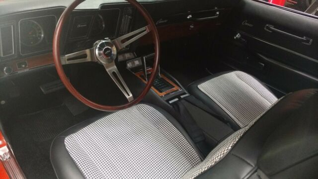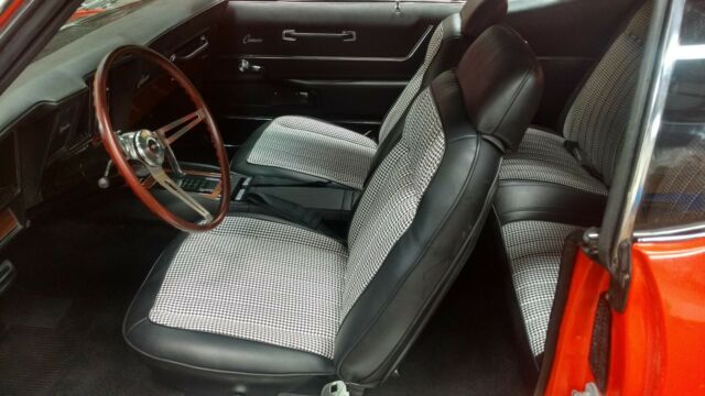 Beautiful factory Hugger orange paint code 72 with Black Z stripes.Deluxe Hounds tooth interior code 713. This 69 Camaro is a pre X code Trim tag so no verification as to which option born example SS RS z28 Big Block etc. Rust free body. Like new interior. Runs and drives nice. Fresh 355 small block engine. Turbo 350 transmission. New tubular front upper/lower control arms, 2" drop spindle, Large front sway bar,new springs and shocks. Factory GM 15 x 7 rally wheels with Tiger Paw white letter tires. 2" cowl hood with rear spoiler. Hooker headers with X pipe exhaust. Factory tachometer with console and gauges. Rosewood option with Rosewood steering wheel, ash tray and glove box. The most updated photos are with new wheel opening moldings.Looks very nice.Please feel free to ask questions. 5152660469