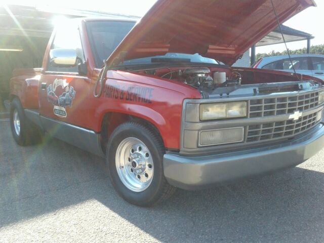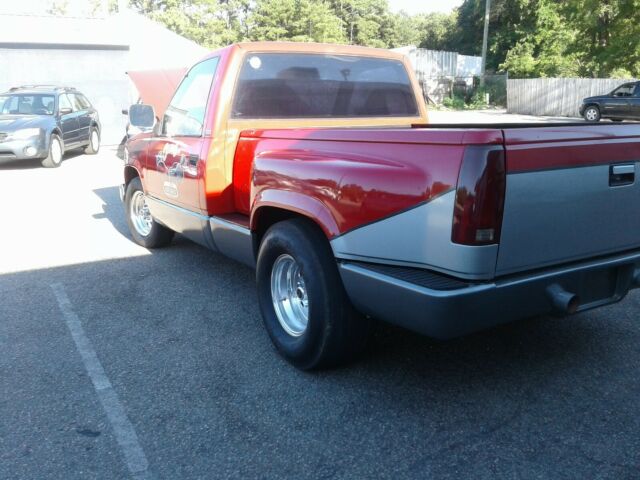 I bought this truck about a year ago and have spent about $4000 in upgrades and safety, but recently had a surgery that has made it impossible for me to work on it. I put stickers on it for my carlot, but its been kept inside and they should peel off with no problem. I've only driven it about 50 miles total and the motor had just been rebuilt. It is a 396/402 with steel crank, good rods, really healthy solid lift cam, etc...all the goodies and block is O ringed if you want to use the NOS system, has a controller too. It has air shift and has everything wired to operate off the carb. Trans. is a Turbo 350 with aftermarket valve body and rear end is Big 10 bolt w/ 31 Spline axles. You smash it and everything comes on and it shifts at whichever RPM you set. Really all you have to worry about is driving and if you let off the gas it cuts everything off. I have never used any of it, but have tested everything and it all seems to work as it should. It has Ladder Link rear end, etc... New Exhaust system ran out rear of truck, New Brakes, Master Cyl., Proportional Valve for the rear Disc and a New Line Lock that has not even been wired. All of the parts are Name Brand and the truck itself appears to be solid. You can go to youtube.com and type in my name Ricky Griggs and see the video: 1990 Pro Street SilveradoYou can contact me if you have any questions or want more pic.s or want to come see the truck. I start it every week or two, but its been sitting for a few months now. Its fires right up and we can take a ride if you want.I do have a clear titleThe truck currently has a 513 gear and slicks, but I have a 373 gear and New install kit. I was going to take it to the track and make a pass before I put the 373 gear and Street Tires in it but had health problems and never made it. My plans were to drive it around and just play with the purge. I ran the purge tube out and put a rubber snake so it blows out the mouth. It is an old Hot Rod, not a Show truck, although all the lights work and the windows roll up and down, etc....it does not have the wipers hooked up, I have everything just never installed them. Also the Power Steering pump is not on the truck, again I have one but never put it on, seems to drive fine without it. Truck can be driven around as is and does not run hot. I do have the truck for sale locally and reserve the right to take the listing down if it sells.The Auction is No Reserve starting at $5500, I will take $7500 Buy it Now, either way there is a $500 Paypal Deposit within 24 hours of the Auction ending. Cash ( NO CHECKS ) at pick up for the balance within 7 days.