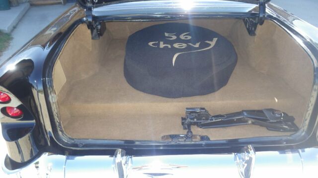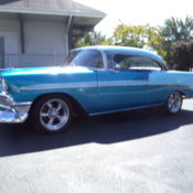 1956 Bel Air 2dr hardtop. Chevy small block 350 with 2,400 miles on rebuild. 350 auto transmission.Vintage Air. Heater works. Edelbrock manifold and carburetor. H.E.I. ignition. Electric Fan. Lokar Shifter. New 2 1/2 inch exhaust,Turbo mufflers. Power disc brakes in front. Dakota Digital gauges. New interior carpet including trunk area. Leather interior with bucket seats. Seat belts installed. Shaved door handles and truck lock. Frenched tail lamps and antenna.Custom built console. New American Racing Rodders, 18 inch rear and 17 inch front. Nitto All Season Performance tires. Rear air shocks. Custom front Grill.