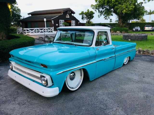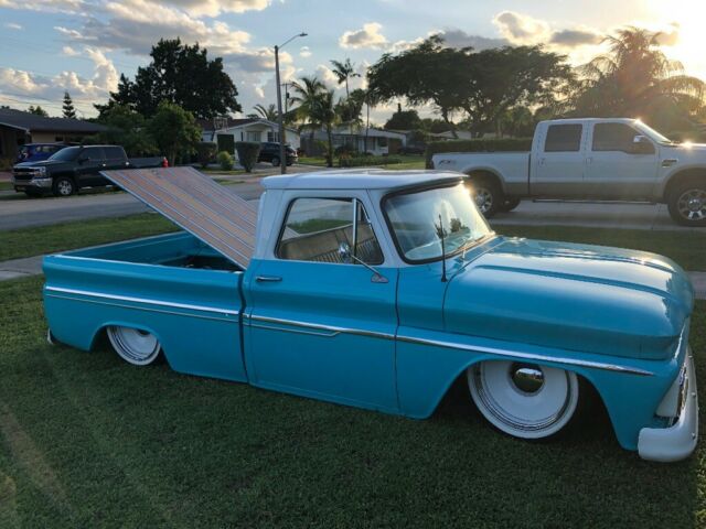 1965 Chevy c10 big back window short bed fleetsideThis truck has all the bells and whistles!!! Engine is an LS3 6.0 with header, Porter built suspensio, accuair air rid, black window 250 venom exhaus, front and back disk brake conversion, Brand NewVintage A/C. Dakota digital gauge, sitting on 20” Detroit mob steel with 1”1/2 white walls etc .... Please contact me for more detail of anything you need