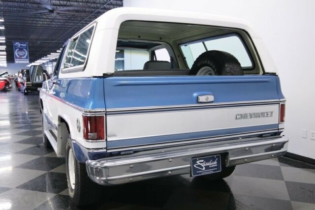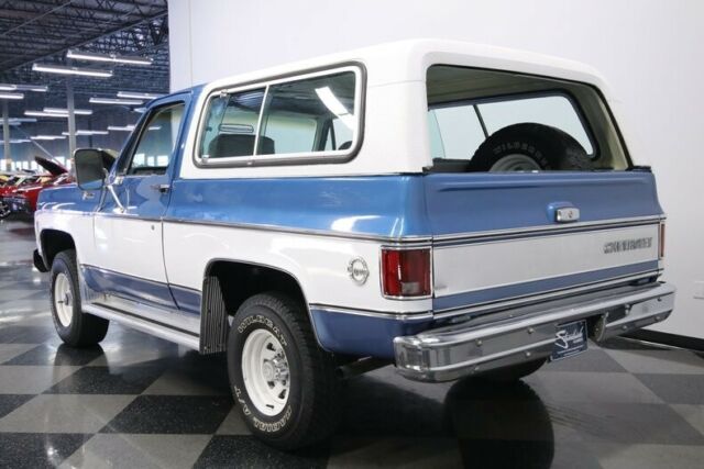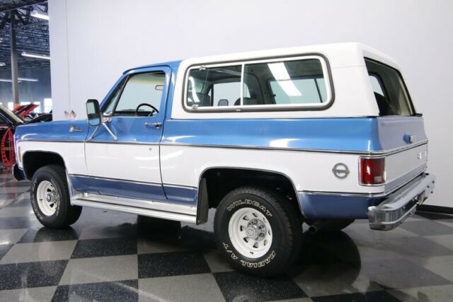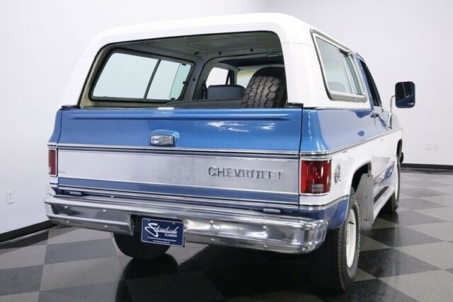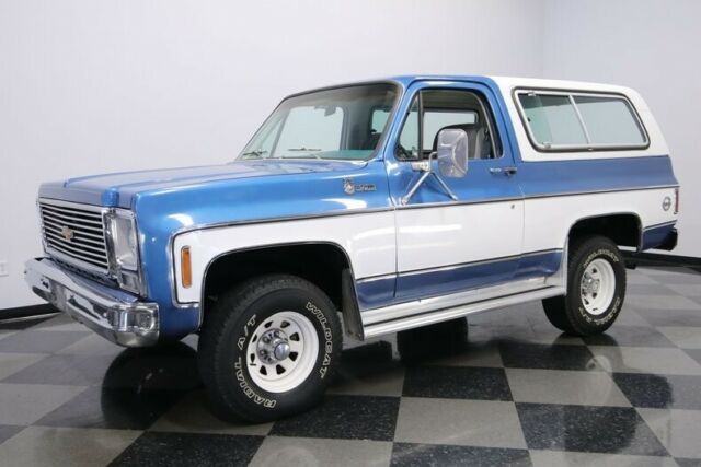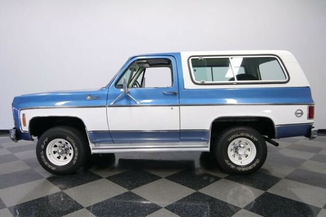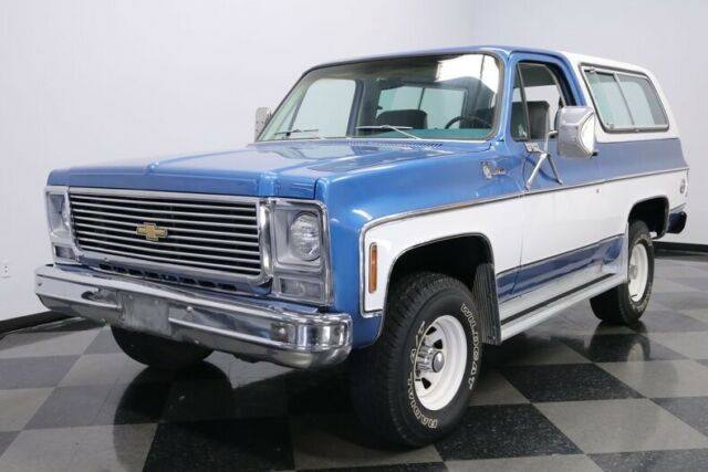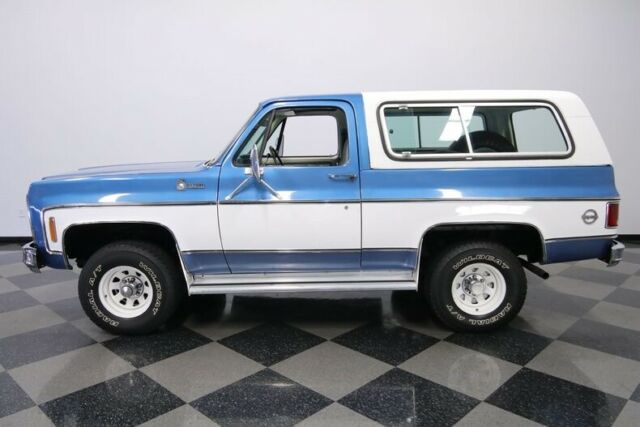 You'd expect to pay handsomely for a 1979 Chevrolet K5 Blazer that has a great vintage look and the V8 power to still get the job done. But this cool convertible 4x4 really does offer all you want, and does it for an obtainable price. There are a lot less of these round headlight K5s running around these days. So, the classic Chevy front end really gives this one extra distinction. Of course, what's really grabbing everyone's attention... is the paint. The Hawaiian Blue and Frost White is a great color combo, and it was refreshed later in life so you get some nice extra luster in the sunshine. The two-tone has a well-defined boarder thanks to the premium trim that gives this an upper-class look. Plus, it coordinates nicely with the white wheels and white fiberglass top. Bright chrome bumpers, wide tow mirrors, and running board complete the first-class look. So while this is a tough 4x4, it's also one attractive total package. The first thing that you'll notice inside is how this is built to be long-haul comfortable. The seats are all covered in a cushy velour. Up front are high-back buckets with a cup holder center console in-between. The classic Chevrolet steering wheel is on a tilt column, and these Blazers share the Silverado's dash that wraps around the driver. There are also nice details like wood trim on the doors and power locks. The rear side windows slide open with ease, and the back glass is power operated. Of course, your rear favorite breezes will come from removing the fiberglass top entirely and enjoying a convertible SUV. Under the hood is Chevy's famous 350 cubic-inch V8. It looks clean and tidy because that bold blue block is freshly painted. You can also tell by the belts, wires, and hoses that this has received the right care over the years. The V8 inhales deeply though a proper Quadrajet four-barrel carburetor. This power is great in a go-anywhere 4x4 that has a tall stance and two-speed transfer case for the best off-road performance. But a good Blazer like this has the right features to tackle the street or trail. That's why it has great anytime driving features like the TH350 three-speed automatic transmission, power steering, and power brakes with discs up front. This classic K5 looks sharp and feels sharp on the road. But you're not the only one who recognizes a good deal, so don't miss out. Call today!!!