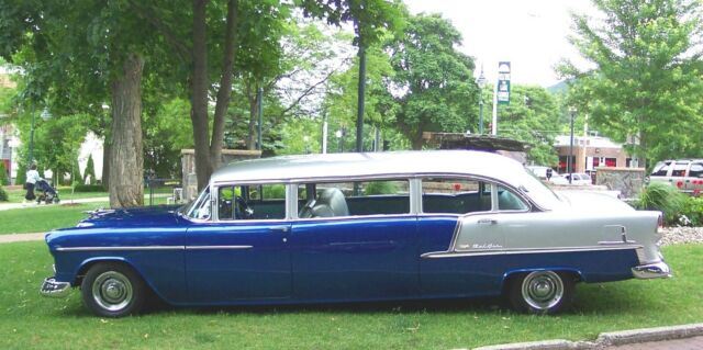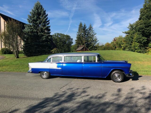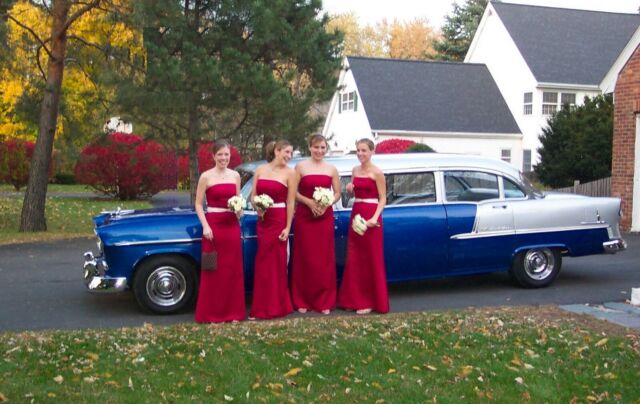 Chevrolet Bel Air/150/210 . This car was stretched 47 inches and has been used as a Limo service for ten years It has Vintage Air Gen IV air conditioning, Ridetech air ride rear shocks, I DID IT tilt steering column with power steering and power disc brakes (front disc only) Chevy 327 with Turbo 350 transmission, March performance serpentine belt system, electric windows.Would be a great car for an airport transporter or your kids weddings like I did. I was able to provide a quality ride for my kids proms, weddings and special occasions for my Family, my kids and there friends.The 1955 chevy limo build began in 2004 from a project car(not completed) from Texas I bought off E Bay.The engine was rebuilt as well as the transmissionFront Disc brakes were also includedThe frame was extended by a professional frame shop and they also put in the two piece carrier bearing. I then took it to a local machine shop where they balance both shafts.The car has had the same tires on it that I bought after the car was put on the road. There is no uneven wear and allignment was completed by another local shop that specializes in trucks.The body has no cracks in it and other than garage scrapes and dings paint still looks good.The car has no rust and was always indoor stored when not in use.The side inserts are 2 door doors with new door skins. I also put a brace between the front pillar and the rear pillar for extra support.The roof was taken from a 55 station wagon.It has a modern fuse panel, Rain Gear windshield wipers and VintageAirGen VI heat/air conditioning conditioning.The engine has had several attempts at pulley systems till I finally finally went with March Performance system.I put ridetech air shocks in the back to handle loads when 6 people are in the back I also put station wagon leaf springs in the back. When I was carrying groups of people I put 10 to 20 pounds extra in the shocks. The car always rode level. I also put heavier coil springs in the front.The car was featured in the local prestigious Saratoga Automobile Museum and also in the local magazine HorsepowerThe car was used for Weddings and Prom for local car enthusiast for several yearsFurther pictures can be seen on https://1955chevylimo.shutterfly.com/pictures