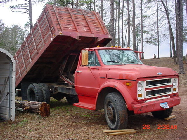 This is a 1970 Chevy C-50 Dump Truck. It has a 292 6 cylinder engine and a 4 speed transmission and a 2 speed rear end. The truck Drives. Runs. stops. It does have a few rust issues. the floorboard has a rust through on the driver side shown in the picture. also has other rust spots but not through. Truck could use a set of tires. The dump is a Heil system and works fine. The truck can be used as is. the dump system alone is worth the asking price.