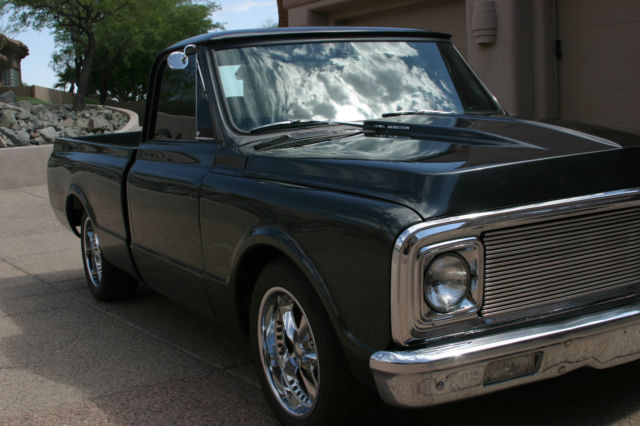 1972 C10 SHORT BED 496 BB -Professionally Built 496 BB. nbsp; 628 HP. 622 Torque -TH350 Transmission - Brand New -Willwood 4 Wheel Disc Brakes with New Hydratech Hydraulic brake booster/master cylinder -Chip Foose Wheels. tires like new -Chrome Tilt steering wheel -Power steering -CPP Tubular front and rear suspension with 2 inch Drop Spindles-New Steering Gear Box -All new ball joints and tie rod ends -Performance sway bar -Aluminum radiator With electric fan -Power windows -Billet dash with Autometer gauges -12 Bolt rear end with moser mini spool -New stereo with CD and Bluetooth connection -New carpet -New Headliner -Door poppers -Alarm -Optima battery with Billet alum holder -Custom Upholstered bench seat -Holley Electric fuel pump Sold as is where is. no warranty Wife says it has to go. As with all old cars there are some things that need attention. Rear window needs tint. fuel gauge is consistent but reads from full to half empty (at half empty it is empty). front end needs alignment. heater core leaks so heater is disconnected. scratch on passenger rear qtr panel behind tire (see photo). *** Please note that the transmission in all pictures is the old unit. the new one has a stock pan not the deep alum trans pan in pictures. ***