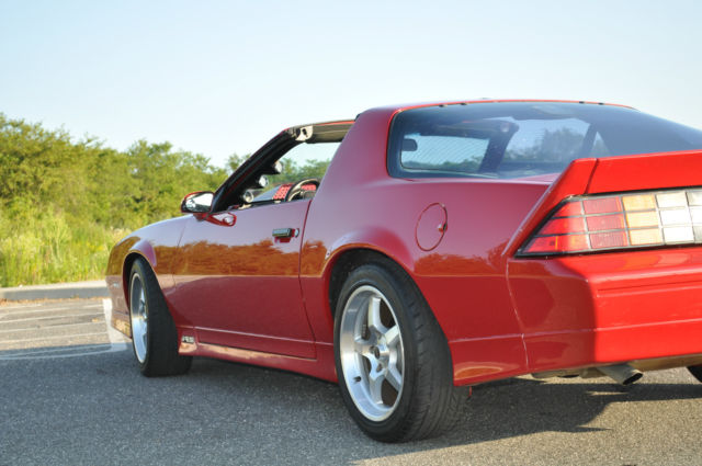 1989 Chevy Camaro that has been restored and upgraded better than original. Only 3. 00 miles have been clocked on this Restoration which never saw any winter driving. The last inspection was in April of 2013 and since then It has driven less than 100 miles. I did a full tune up in May 2014 which included plugs. cap. rotor. fuel pressure regulator. fuel filter. and fuel injectors. History: This car was purchased in 2004. Restoration began with full tear down. repaint. motor and transmission upgrade which took the next 4 years to complete. Final outcome was a restored 1989 Camaro with L98 Chevy 350 TPI fuel injection. Fourth Gen T-56 manual 6 –Speed manual transmission. modified suspension with 17 inch aluminum wheels. Infinity G35 Laser Red was used to highlight the body with new front sheet metal. 2 inch cowl hood. and 5 inch rear spoiler. Interior has been updated to 1991 specifications with gauges. new fabric all around. Kenwood radio with dual 12 inch subwoofers in rear cargo area surrounded by carbon fiber enclosure. T-Tops have been painted and received new seals and rest is the original GM rear cargo storage bag on those nice days. The interior seats have barely been sat in after being reupholstered. mainly the drivers seat. I have not had the time to drive the car for the past two years now. between dealing with a sick family members. kitchen remodel. and now work relocation this summer. The car is more than worth it in the amount of parts listed below. A new battery was installed this past October and has been on a trickle charger. It was cleaned in the fall before going hibernating in the garage under the car cover for the winter. Had occasional starts to keep everything lubed. I am at a different point in my life now than several years ago and want to see it go to someone who will enjoy it as well. The motor has plenty of power and the 6 speed really gives you the drop in rpms on the highway. It’s truly a cruiser that glides down the road and has the control and handling of a modern day super car. It’s rides firm and tight like better than off the show room floor. List of Modifications/ Upgrades: Drivetrain Engine Chevy 350 TPI (Tuned Port Injection) Edelbrock Headers Dual High Flow Catalytic Convertors Flowmaster 40 Series Muffler 24 lb fuel injectors Holley Adjustable Fuel Pressure Regulator Fuel Pump New Complete GM Serpentine Accessory Drive Kit (alternator. pulleys. etc. ) All New Engine Sensors also including Distributor. Coil. ECM. IAC. Knock. etc. Factory 91 Z28 Wiring Harness throughout vehicle All New Hoses. such as coolant. vacuum. A/C Aluminum Radiator Be Cool – Dual High Torque Electric Fans Polyurethane Motor Mounts Fuel Lines – New Rubber and Hard Transmission Fourth Generation Camaro Borg Warner T-56 6-speed manual transmission Aluminum Lightweight Driveshaft Polyurethane Transmission Mount Suspension Hotchis Performance Coil Springs with 1 inch drop Tokico Struts Shocks Sophn Upper Strut Mounts designed for lowered vehicles Sophn Front and Rear Sway Bars Sophn Steering Brace New Steering Components from tie rod to tie rod Hotchis Rear Control Arms Hotckis Rear Panhard Bar Sophn Rear Control Arm Relocation Brackets designed for lowered vehicles Subframe Connectors – Welded for Additional Strength Jegs Adjustable Torque Arm Polyurethane Bushing on all components ROH Snyper – 17x8 Aluminum Wheels Tires – 245/45/R17 Brakes Front 12 inch LS1/ C5 Disc Conversion – from FlynBye Performance Rear 1LE Disc Brakes Brake Lines – New Rubber and Hard Master Cylinder Exterior Infinity “Laser Red” Paint – Stock G35 color Front Bumper – New Front Spoiler – New Front Fenders – Left and Right – New Front Parking Lights – New Front Grill - New 2 inch Cowl Hood – Steel – New Windshield – New T-Top Center Bar – New Piaa Fog Lights – wired to factory switch 5 inch Rear Fiberglass Spoiler – Hawks Third Gen Parts Clear Side Markers with amber bulbs New Door Locks and Handles Weather-strip Complete Car – Includes but not limited to Doors. Hatch. T-Tops. Hood. Window Sweeps. Mirror Triangles Side Body Molding was not re applied Car Cover made by Cover King that fits perfectly – Red and Black color New Coolant Overflow Tank New Washer Fluid Tank Interior Black and Charcoal 1991 Camaro Z28 Components such as Gauges Custom A-Pillar mounted Gauges – Air/Fuel Ratio. Oil Pressure. Engine Temperature Door Panels – New Rug – New Seat Upholstery Kit – New ABS Headliner Panel Shifter Ball GM Rear T-Top Storage Bag Kenwood In-Dash Stereo – AM. FM. XM. CD. plus Aux Input Speakers Dash and Rear - New Dual 12 inch Subwoofers with Custom Rear Compartment Enclosure with Carbon Fiber Overlay Updated Dome Light There are plenty of items that were probably forgotten or not listed. Such as brake pads and rotors. A collection of parts that will also be included. Such as service manual. box of parts and sensors. and anything else in my possession that corresponds to a Third Gen Camaro. The known issues are the following: - Airbag Clocking Spring located inside the Steering column. This connects the airbag to the wire harness under the dash and allows the steering wheel to turn without losing connection. A new computer and sensor were purchased prior to diagnosing the problem with a scan tool. It is a simple fix by removing the steering wheel and then the clock spring. - The dash pad had a crack repaired but is still visible. Dash pad covers are now available for purchase on the internet. Please be aware of the following before bidding. Car is purchased As-Is and as described above. I am not a dealership and will not be providing any warranty. Buyer should be committed to full payment before they place their bid. The buyer is responsible for providing a nonrefundable deposit within 48 hours of the auction closing. Paypal will be accepted if buyer wishes to pay remaining balance in cash upon pickup. Buyer is responsible for pick up. this means they w