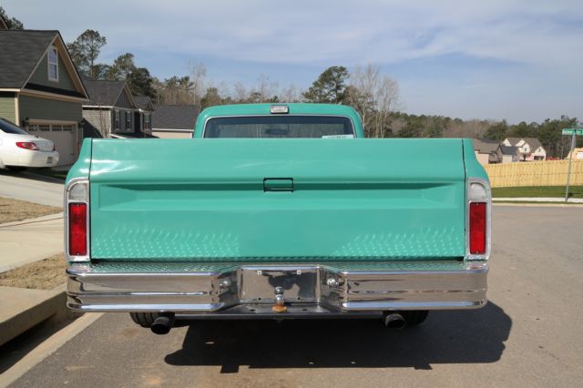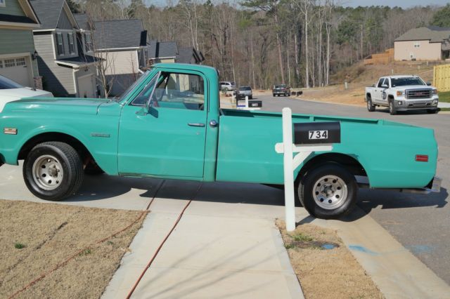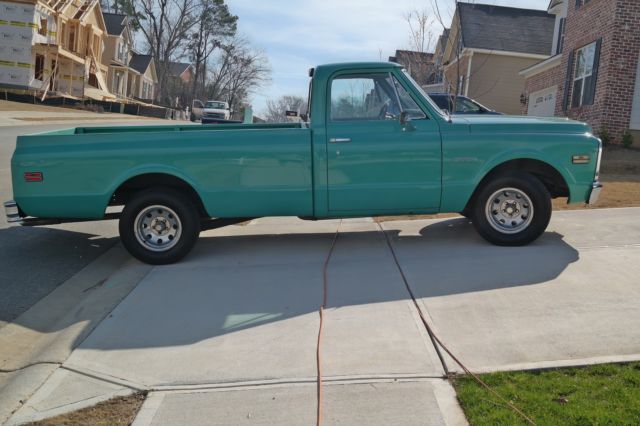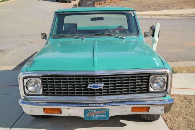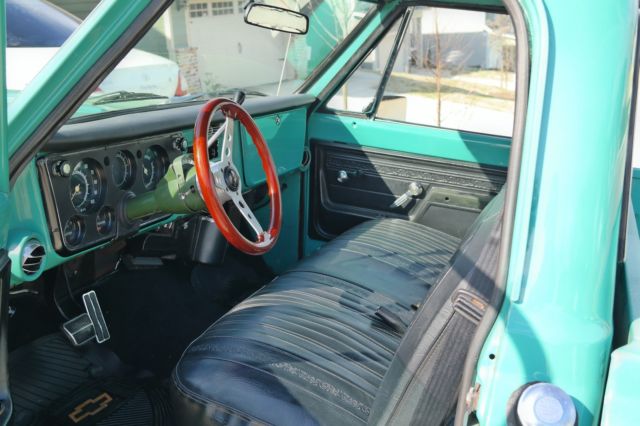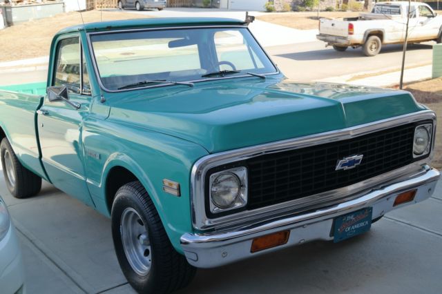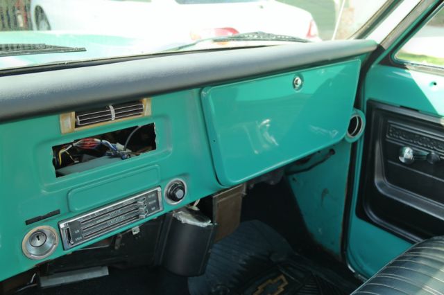 1972 Chevy Cheyenne. 350 LB. Truck has new fuel injector. new brakes. brake boost. tires. front end. starter and battery. The heater and air conditioner work. not great. but it works. Wipers work like new. horn has an authentic sound. Truck has stylish wood steering wheel. The unique color (turquoise) stands out. The interior is custom black leather. clean with new Chevy floor mats. A couple of new replacements for the esthetic value. Comes with original jack. Runs like a dream (video demonstrates start-up). This truck has body work that needs to be done. There is rust on certain sections of the body (photos will show). With some body work. this truck is pretty much done. What you want to do with it. is up to you. Its head turner and get compliments all the time. I have no use for it. nor do I have the time or money to complete this project. Copy and paste the following URL (https://youtu. be/oYt8cere44A) in order to see proof the engine does start.