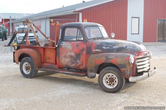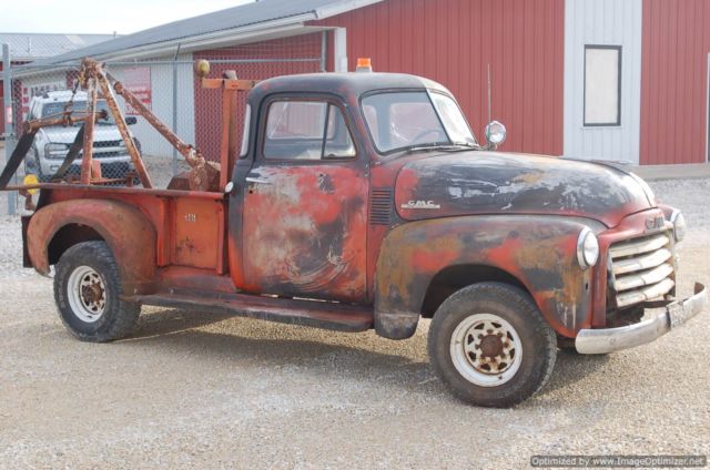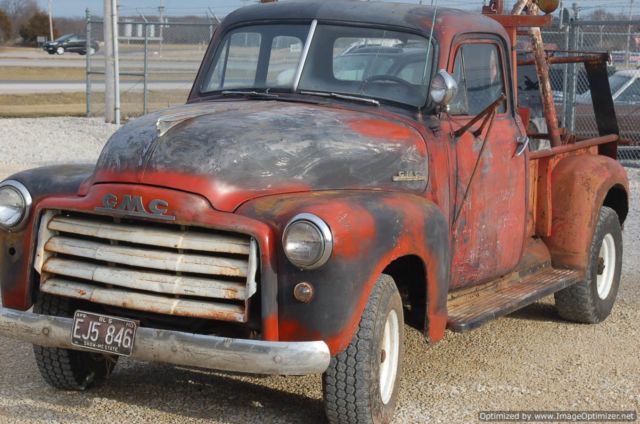 N2CARS. LC brings to you for consideration a - 1951 GMC Five Window Original Tow Truck. Has boom with Tire hoist and working hand crank (could use crank redone). Inline 235 Cyl Engine. 4 Speed manual transmission. Runs and Drive good for a 64 year old Truck! Mechanical: It runs and drives good. Clutch is good. Tires are decent but old. The brake have been gone through recently and are in good working order. Horn Works and strobe on top works. Headlights are not working nor are the taillights. We have not went any further to see if its bulbs. fuse or wiring. Gas tank is older and could stand to be cleaned or replaced - doesn't leak. Exterior: It has a premiered exterior from previous owner which was stripped to reveal some of the original paint along with the "Repair Shop" Signage on the door. The body seems very solid with typical rust In drivers cab corner (see picture) Floor pan is solid and has been patched over the years. Passenger side marker light is missing. The tow bed has all the apparatus. along with lots of tow change and other tow related items. It is a Manly Brand Hand Crank Tow bed (see pictures) - Emergency brake does not work. Interior: Seat is in decent condition with a rip on drivers side (see picture) it looks like an original seat bottom and the back was covered at one time. Very basic interior - had a radio but isn't working. This is from what we find a rare truck it is a 8 lug 3/4 ton truck with a 4 speed transmission and the in-line 235 6cyl engine. IT STARTS. GOES AND STOPS!!! Just like it was intended to do. It would be great as a company logo sign for a Repair Shop or Tow Company. Would also make a awesome truck for car shows as I doubt another one will be there. We have two video links below of the truck running and driving;https://www. youtube. com/watch?v=Pmsb_Ti95fA&feature=youtu. behttps://www. youtube. com/watch?v=M-4P5dKIgIQ&feature=youtu. bePlease ask questions. its hard to cover all aspects of condition on a truck of this age. Also Please take the time to see and "LIKE" our Facebook page. We have several vintage cars and trucks. Thank you and BID TO BUY - If you have 5 to no "feedback" please contact us prior to bidding. We use EBAY to Sell Cars and Truck not as advertisement.