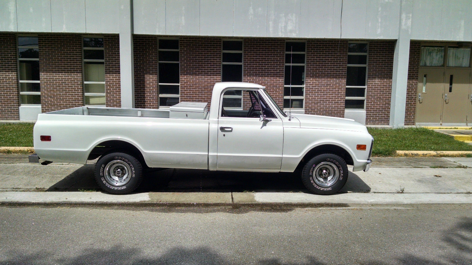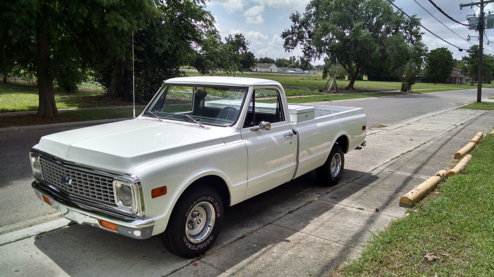 This is a very nice 1972 Chevy C10 long wheel base truck. It has the 250 inline 6 cylinder with 3 on the tree. It has a few upgrades from stock. It has aftermarket AC. which blows ice cold. It has a Sunpro tachometer. It has an upgraded distributor. This is a great running truck. I drove it down to Louisiana a few months ago from Tennessee with no problems at all. It could for sure be a daily driver. The odometer reads between 55 and 56K. but there is no hundreds marker. so I'm not really sure how many miles are on the truck. The truck has been owned in the south its whole life. I am the third owner of the truck. There is not much rust on the truck at all. Please let me know if you have any questions. On Nov-28-14 at 16:54:12 PST. seller added the following information:Just FYI to everyone looking. the reserve on this truck is set at $6750.