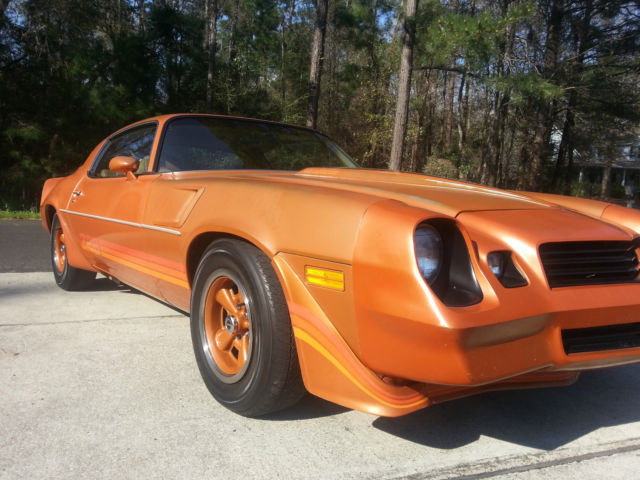 I am the 3rd owner of this 81 Z28 Citrus orange. appproximately only 3000 made of this color. It has tan interior. brown dashboard with no cracks. A/C was working. convertered to 134A. the motor and car has only has 57300 miles and everything is original on the motor. It runs strong and transmission shifts well. The body is in good shape. panels are straight with no rust. There are a couple of spots on the inside of the hood that has started rusting but the whole car itself is very solid. The car has original exhaust manifolds with dual exhaust running through flowmaster mufflers. On Mar-15-15 at 06:47:31 PDT. seller added the following information:Here is a video of it starting and running. http://youtu. be/tDiDU8A-IRk