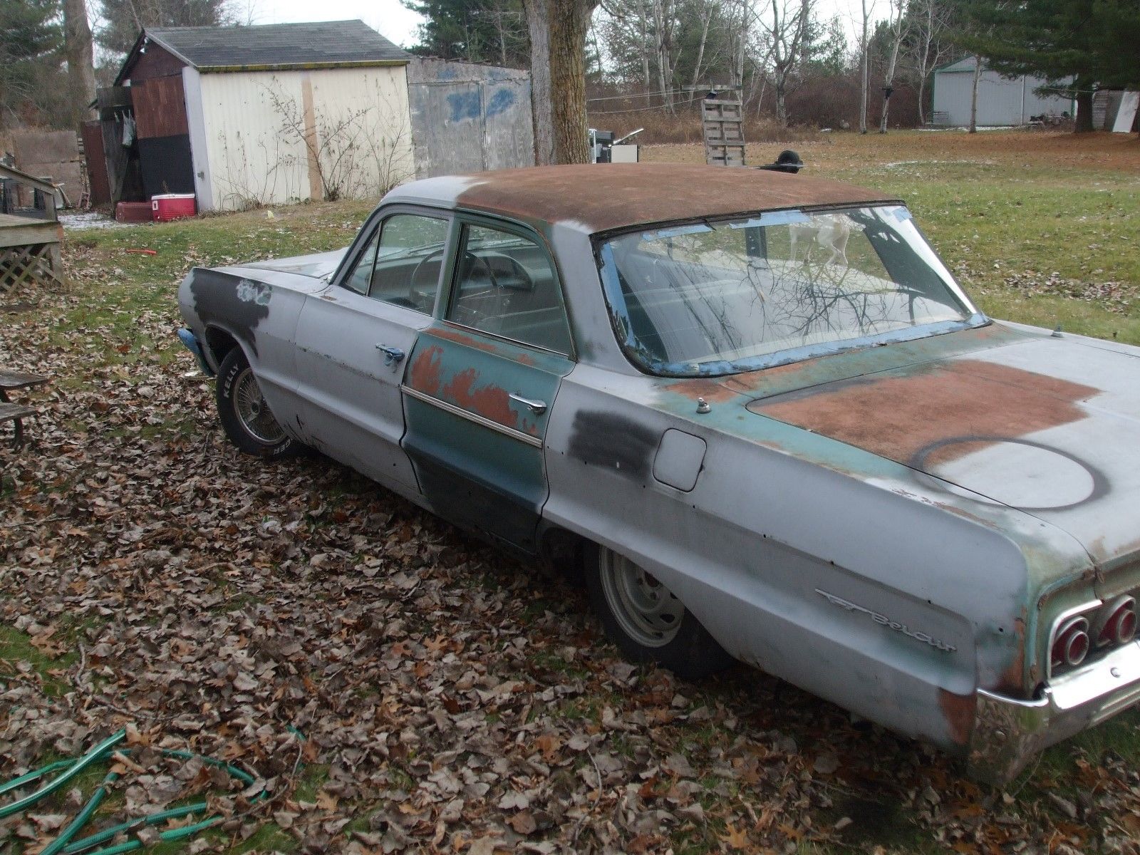 1964 Chevy Belair Project I6 motor 230 three in the tree. starts runs drives and shifts breaks are a little hard needs to be looked at. two newer seats that need to be recovered and two newer doors come with the car front left and right rear they are in better shape than the ones in the picture. I do have all four hubcap's and trim trunk is in pretty good shape and a few small holes in the front floor pan nothing big. again this is a project runs nice and wont take much to get this one back in great shape