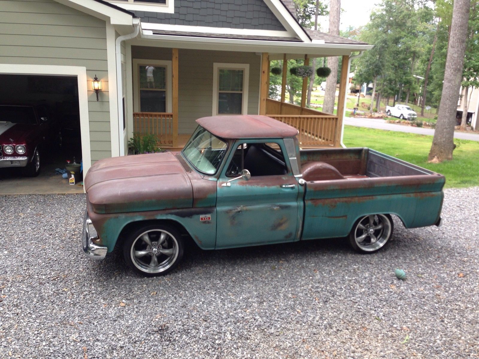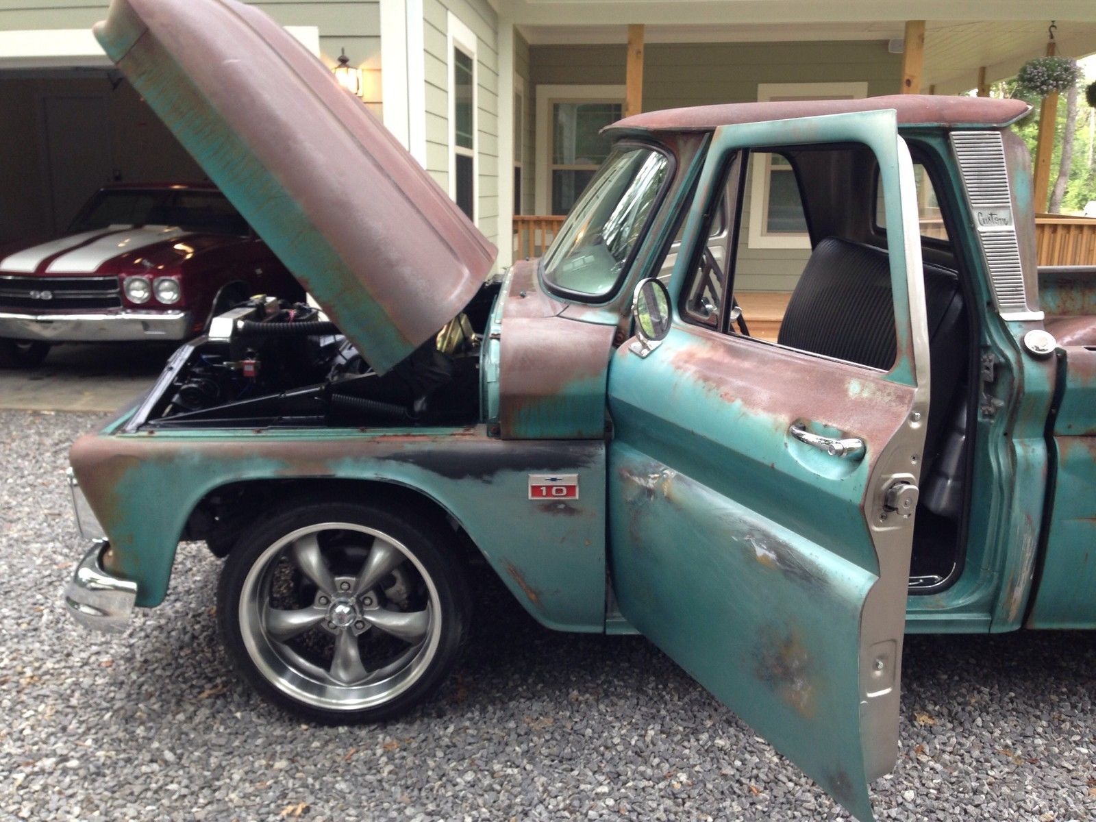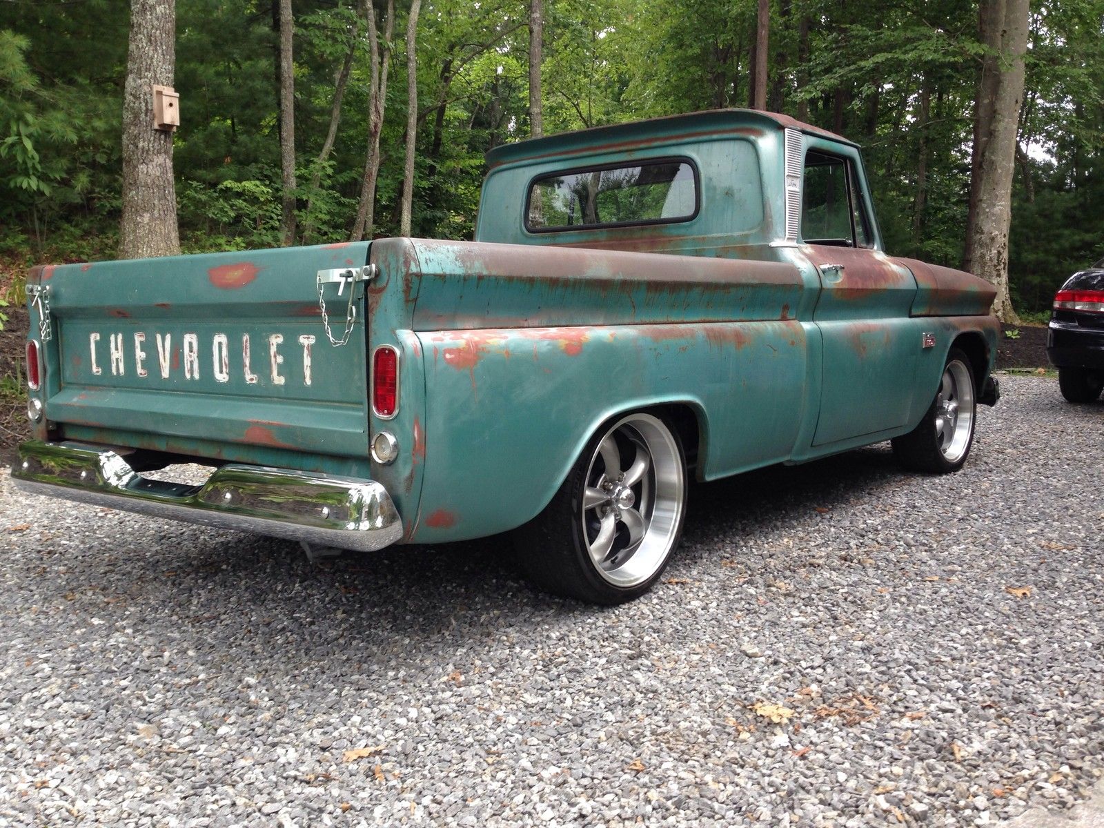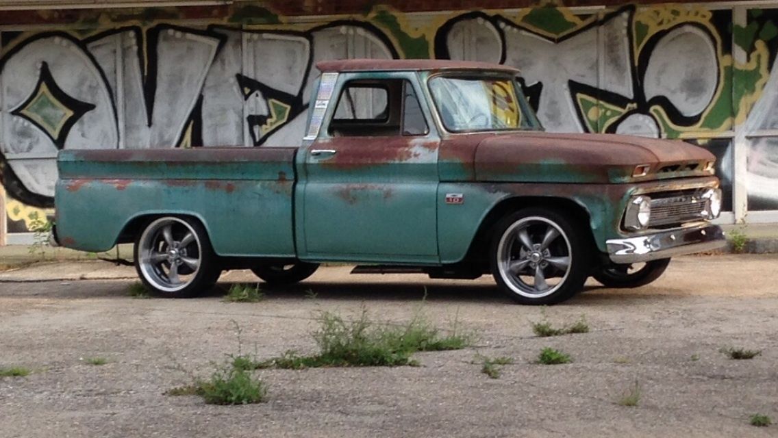 1966 C10 shortbed. This truck was built by bowtie rods and customs in swannanoa. C and will not disappoint !The truck has clean NC title in hand . The truck is a South Carolina truck retaining its original patina. Every nut and bolt has been replaced. The truck has been taken off the frame which has been prepped and painted in gloss black enamel. Below is a detailed list of work done and upgrades. This truck is fast. and runs and drives awesome. Everything works including gas gauge and speedometer. No expense was spared during this build-new 4 inch lowering springs. with new shocks- 5 lug conversion- power disc brake conversion with new rear pads and new brake lines-power steering conversion - 3:73 12 bolt rear-18 inch wheels and tires-rebuilt 350 4-bolt main. bored 40 over. mild cam. 2:02 double hump heads rebuilt. aluminum intake. holley 650-jet coated shorty headers with flomaster dual exhaust - new aluminum radiator with electric fans-4 speed saginaw conversion with new centerforce clutch. and new flywheel - new hurst shifter-new fuel tank with sending unit -all new body bushings and body bolts-all rust holes repaired with new cab corners. rockers. and lower fender patch's- South American hardwood bed with new stainless bed strap kit-all new window rubber and felts-new front windshield-new chrome front and rear bumper- new chrome side mirror. grille. and headlight bezels-new tail lights with bezels-new tailgate chains- new carpet. scuff plates. and seat professionally reupholstered No disappointments with this truck. It gets comments and lots of attention wherever it is driven.