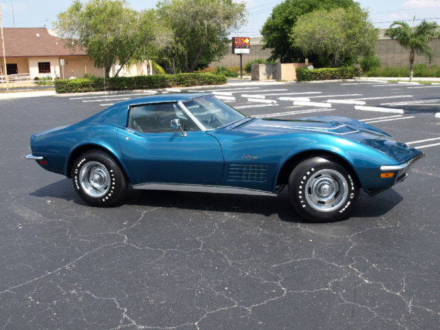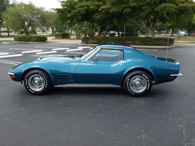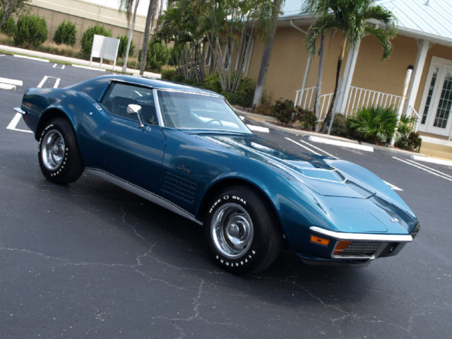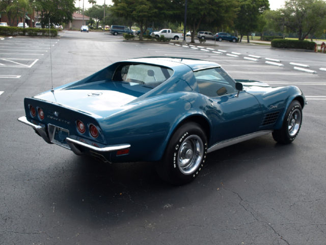 This is a 1972 Corvette LT1. Numbers matching. 3 owner. Bryar blue exterior and black interior. Nearly all original. Engine compartment is nearly untouched. Even has the smog pump still attached. Seats and carpet are new. One repaint (original color) 5 years ago. 102. 00 documented miles. This is a really great car. Runs great. Rides incredibly smooth. The lines. gaps and spacing on the body are literally like they were 43 years ago on the showroom floor. The "average" NADA retail on this car is over $46k. This car is well above average. I'm not going to bore you with details. If you are looking at this car. you already know what an LT1 is all about. This car sells itself.