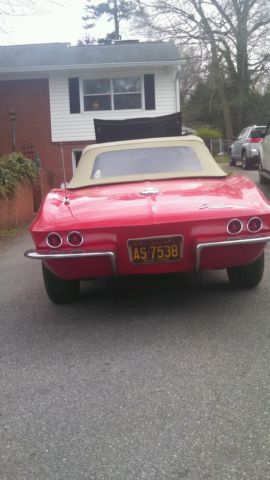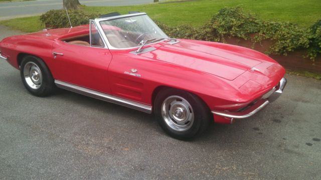 I'm listing this car for a friend. It is a real Fuel Injected car. It does have the air cleaner hole in the radiator support and the correct 6500-7000 redline tach. It now has a rebuilt and very strong running 65 model 327 with a Holley carb and M21 Muncie transmission. The independent rear suspension was removed years ago and replaced with a 10 bolt solid rear end. Easily changed back since 63 to 82 Vettes are the same. The complete front end was rebuilt. Exhaust is like new. Tune up is recent. Cable drive tach works. Needs speedometer cable. Clock works. Wonder bar radio works but needs a new speaker. Paint on the car is driver quality with some chips and normal wear. Same owner since 1999. Has disk brakes on the front since the old front drums are unsafe. Both front and rear brakes have been rebuilt and stop the car as they should. Has both tops. Has 15x7 rally wheels and new Michelin radials. I rode in it today and it runs very strong and straight. Has a Flaming River tilt steering column installed which can also easily be changed back. He also has the ignition shielding for the engine. The hood is not original to the car. I don't see any stress cracks and the body lines and seams look good for a 63 Vette. The reserve on this car is very reasonable by what I see junkers selling for. This car is tight and a very nice driver or local show car. You would not believe the people that were driving by and yelling as I was taking pics to list this. Any questions please feel free to ask. The car can be seen by appointment. The car is being sold as is where is. No warranties expressed or implied. There is no rust in the frame. On Mar-25-15 at 18:16:00 PDT. seller added the following information:If this car sells and I do believe it will. I can put you in touch with a person that would have a correct 63 engine and a correct fuel injection unit for a 63. I talked to him today and he quoted me a good price on the unit. Less than half of what they are selling for on eBay. This car put back to its former glory lists for over 100 grand by NADA.