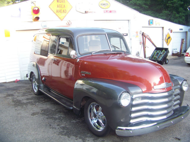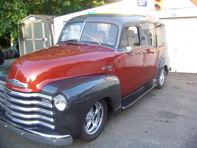 up for bid is my wifes 1952 panel truck this was a ex miltary abulance and was in excellent condition when we started the restoration four years ago notice the doctors bench still intacted wood floor is in great condition inside and under my wife has losed interest in the truck and wants something new and i dont have the time or the money to finish this one and my 67 gto so this needs to go we have well over 35. 00 invested in this truck already notice the popout windows that we had professionally installed so she could have better vision and yes they do function this truck is 90 percent finished it has a completely rebluided 350 engine and 350 transmission it also has new painless wireing fourway disc brakes new lines hoses ect new bumpers grille this was a gmc but my wife liked the surburban grille better new upgraded wipers new heat and air all hooked up but not yet charged new heights front chip wheels new tires are about 80 percent new exhaust truck runs and drives i think all lights are working new dolphin gauges hooked up and working this is what i think the truck needs to be finished front end alignment double check all lights wireing door panels carpet ect please email with any questions or come by to inspect please also no trades thanks and happy bidingOn Mar-23-15 at 17:45:13 PDT. seller added the following information:I also reserve the right to end auction early