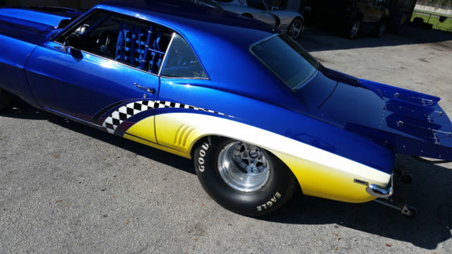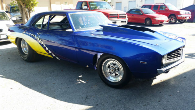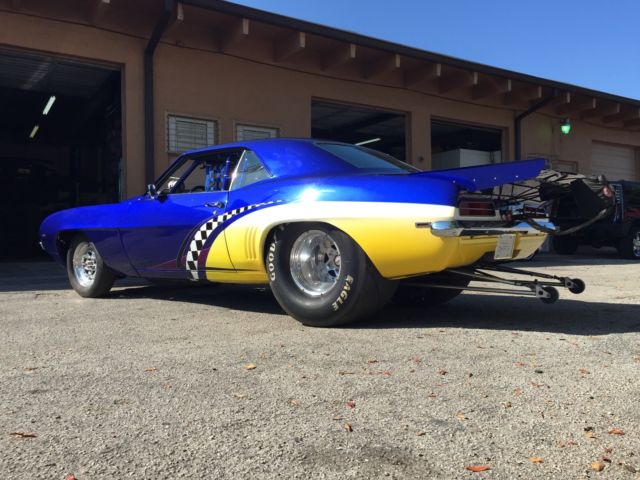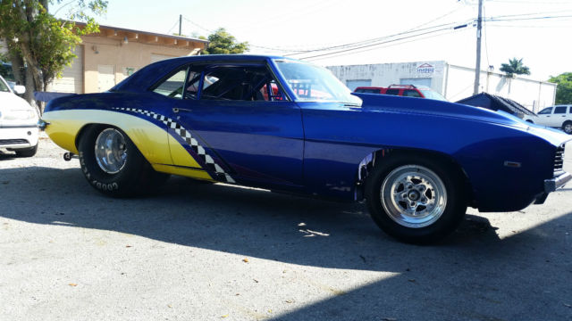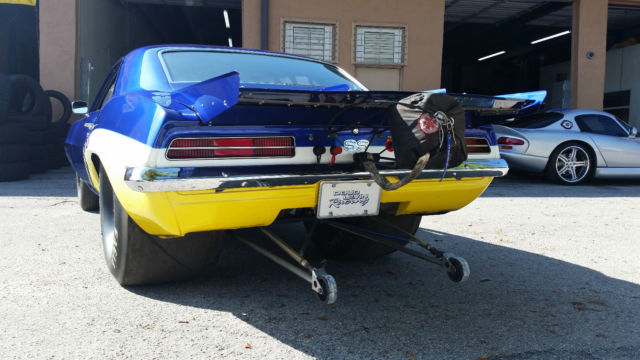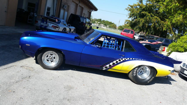 Hello. nbsp; Up for sale is my Beautiful 1969 Pro Street Camaro. The '69 has always been one of the most desirable years for the older model car. The custom paint on the car is remarkable and shows no signs of rust or wear. The car is extremely nice. not junk like some of the other cars you may have seen out there. The car is sold as a "roller" but does come with a BBC 565cu Long Block that has never been run since rebuilt. The engine was setup for a BIG blower application. The heads are Dart 360. The car also comes with some electronics. No transmission is included. but does come with a driveshaft and Trans cooler w/fan. Included is the GM ignition switch with the old style keys. Tilt wheel. Tach. some gauges. motor plates and more. I will provide more pictures shortly. Included with the purchase:Brand new inner door panels never installed. The vehicle comes with a title so the thought of converting it to a street car is a possibility. Items brought to your attention:The car does not come with a transmission. but does include the driveshaft and transmission cooler with fan. There are some scratches and dings. The tires should be replaced with new for racing. I DO NOT KNOW IF THIS CAR IS AN ACTUAL SS MODEL. You will need to add a small fuel cell in the trunk. The long block engine will need to be installed. Vehicle had a 7. 50 certification that will need to be renewed. There is an onboard fire suppression system that will need to be re-inspected or certified. The true mileage is unknown. If you are seriously interested please contact me so I can arrange for inspection. Buyer pays for all shipping costs although I will assist to load the vehicle on transport. There is NO warranty expressed. written or implied. Vehicle is sold "as-is. "Payment: Cash in person. bank to bank wire transfer. PAYMENT DUE IN FULL within 5 days of auction closing or you will lose your deposit- no exceptions. Thank you. NO Listing agents. scammers. or LOW BALLERS! NO TEXTS Please! **Call Doug at 305 992- SIX . FIVE . TWO . FOUR. NO TEXTS Please!Thanks for reading!!