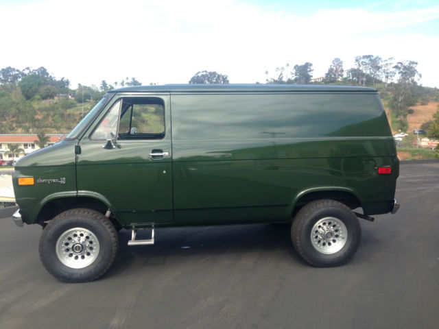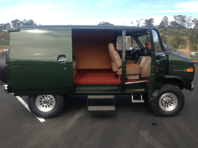 Newly restored custom build four wheel drive with 3/4 ton chassis and beefed up suspension. New air conditioning. stereo. nbsp;upholstery. paint. shag carpet. tires. nbsp;brakes. and shocks. The 350 chevy engine has been completely rebuilt with less than 5. 00 miles. The rear bench seat makes into a nice bed and is ideal for camping. This classic rare four wheel drive van is a real head turner. Give me a call or message me if you're interested (760)801-9301 Ask for Stewart.