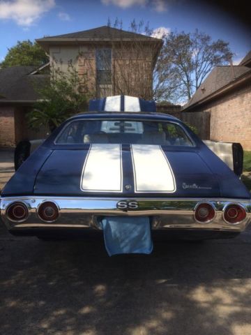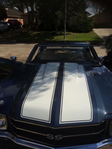 Celebrity owned - title will reflect. 1971 Chevrolet Chevelle SS 454. cams. headers. exhaust. intake. as seen in pic this motor has been professionally built and sounds like it looks! Transmission built to handle power!! 20" foose wheels. tires have 90%. heat/nor ac working! No rust. clean floor pans. new carpet. near perfect leather seats. all four power windows. horn works. wood grain steering wheel. b&m slap stick automatic shifter. clear title. garage kept! Below is a list of few things that have been done but overall. $30k has been invested! Engine replaced with GM 454 Performance engine-----425 HP. has less than 1000 milesRotella synthetic 5w-40 oil usedRemanufactured/rebuilt transmission included replacing pan and gasketReplaced speedometer cable and gear housing assembly Replaced front sway bar with new link pin kits and bushingsRemoved drive shaft and sent out for rebuildReplaced all four sections of parking brake cablesReplaced rear section of brake lineWheel alignment included:caster. amber and toe reset on front. Camber and toe reset on rear axleBrake system flushRear brake shoe service:includes replaced both sets of rear brake shoes. resurface both rear drums. lubricanting and cleaning rear hardware and wheel cylinders. Bearings repacked. Front brake disc service:includes replace front brake pads. esurface/replacement of both rotors and lubrication of caliper slidesRemoved and rebuilt rear differential with limited slip 373 gear ratioTear down. diagnosed and adjustment of carburetor Replaced window wiper motor assembly Replaced circuit breakersNew battery 3/25/15 O'reilly 5/yr warranty