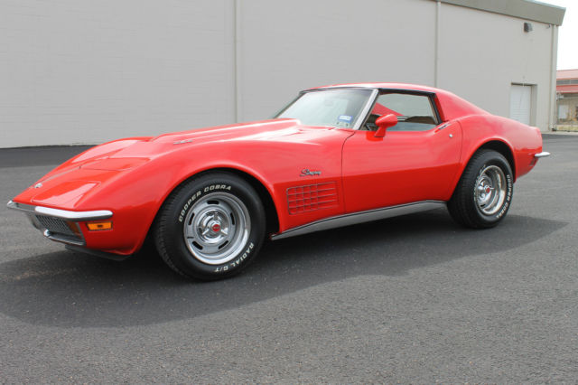 1970 CHEVROLET CORVETTE LS5 Vintage Autohaus & Imports is proud to present this LS5 restored Corvette. This is a fresh body on restoration with attention paid to detail. The engine is the original vin stamped Block 454ci/390hp with stamp pad reading T0206CZU and correct vin. The 4 speed M-22 transmission is coded P9C13B and is a replacement. The rear end is the original 3. 08 10bolt posi coded 2CAT21370. The body is very straight and paint is fresh. Done in Monza Red code 974 with Saddle interior code 418. The car was built Feb 70’ and shows very well. The paint and body is in great condition and is accident free. The interior is in great condition with no tears or rips. All of the gauges are in working condition. The factory A/C is serviced and cold. The car runs and drives superb with great acceleration and is a joy to drive with the T-Tops off. The T-Tops come with new storage bags as well. We invite independent inspections and look at all trades. WE ACCEPT TRADES For more information and photos please visit http://www. vaitx. com or call Vintage Autohaus & Imports at 806-359-9600. This vehicle is being advertised locally. we reserve the right to remove the listing at any time. We will accept trades. ZERO FEEDBACK OR NEWLY SIGNED UP BIDDERS MUST CONTACT US FIRST. DISCLAIMER This vehicle is being sold as is. where is with no warranty. expressed written or implied. No allowance or set aside will be made on account of any incorrectness. imperfection. defect or damage. Any descriptions or representations are for identification purposes only and are not to be construed as a warranty of any type. It is the responsibility of the buyer to have thoroughly inspected the vehicle. and to have satisfied himself or herself as to the condition and value and to purchase based upon that judgement solely. The seller shall and will make every reasonable effort to disclose any known defects associated with this vehicle at the buyer's request prior to the close of sale. Seller assumes no responsibility for any repairs regardless of any oral statements about the vehicle.