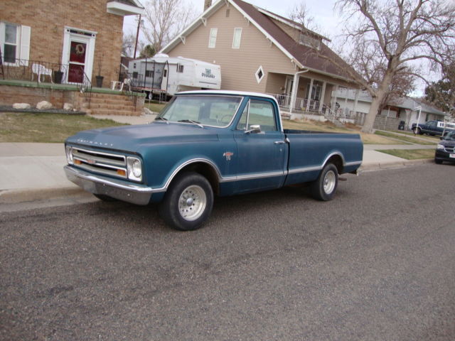 This truck rides and drives great. Nice straight body without any rust showing through. It is a V-8 with 4 barrel automatic P. S. P. B. This one will be a very easy one to clean up and paint no major dents nice and straight. Buyer pays all shipping and handling. If you like please call me at 303-90-STEVE with any questions. This pickup is over 10 years old so will be sold exempt on miles MEANING don't know and can't find out. THIS TRUCK WILL BE SOLD AT NO RESERVE WHICH MEANS LAST PERSON BIDDING OWNS IT THANKS YOU AND GREAT LUCK BIDDING. On Mar-29-15 at 15:28:37 PDT. seller added the following information: Every time I check out this truck for someone I am more amazed how rust free this 1967 Chevrolet C10 is. Here is the engine number V i 229YH and it has a 3 speed automatic. If anyone would like me to text me more pictures please text me on your phone to my number 303-90-STEVE thanks and once again good luck bidding.