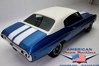 1972 Chevrolet Chevelle V8 #'s Matching SS SS Vehicle Description INCREDIBLE MULSANNE BLUE 1972 REAL SS CHEVELLE. PEDIGREE CAR WITH TWO BUILD SHEETS AND A #s MATCHING ENGINE. EXTENSIVE RESTORATION. GORGEOUS METAL STRUCTURE AND UNDERCARRIAGE. LOADED WITH POWER STEERING. POWER BRAKES. BUCKETS AND CONSOLE FLOOR SHIFT. ROLLING ON CORRECT FIVE SPOKE WHEELS AND NEW BFGs. Fully documented matching number genuine Chevelle SS painted in its correct Mulsanne Blue with White SS stripes. The real SS powered by a #s matching 350ci V8. The car lis launched by a TH350 3-speed automatic transmission and backed by a 10-bolt rear end with F-41 suspension. The original 2 bbl carburetor was later upgraded to a Rochester 4bbl Quadrajet. The SS black vinyl interior features a console shifter. front bucket seats. power steering. power brakes and AM-FM cassette stereo. This car features all of the correct SS badging. cowl hood. 5 spoke SS wheels. very nice correct SS instrument cluster. SS steering wheel. The under carriage of this car is like new with beautiful floors and dual exhaust and F41 suspension with boxed control arms and rear sway bar. Two original factory build sheets and California pink slip are included with this beautiful car. Our #1 Goal at American Dream Machines is to make our customers happy with the cars we sell. This is not an easy goal to achieve when selling 40. 50 and 60 year old cars. We highly recommend that ALL CUSTOMERS call our staff and have very detailed discussions regarding overall condition of any classic car they are considering buying. We are located in the center of the Heartland in Des Moines Iowa. Our staff has midwest values and they will make every effort possible to represent our customers best interests and accurately describe the cars we sell. All older cars have older parts. If they had all new parts. they would be new cars ;-) YES. ALL OF OUR PICTURES ARE REAL. ALL THE WAY AROUND!!! Our pictures are taken in our professional photo studio for the best possible lighting and image accuracy to give our customers the most accurate representation of our cars on all sides. (((PLEASE CALL FOR DETAILS))) 515-245-9100 American Dream Machines is located in a 41000 sq. ft. historical Packard Dealership and is one of the largest full service classic car dealerships in the Midwest. We specialize in American Muscle cars with integrity. None of our cars are consigned. All of our cars prices are always listed on our website to show the values of the cars we sell. We usually have at around 80-100 cars in stock at all times. Please call (515)-245-9100 and we will be happy to tell you about our cars. VIEW ALL OF OUR CARS with more pictures at WWW. ADMCARS. COM Vehicle Specs Engine: 8 Cylinder Transmission: Automatic Engine Size: 358 Drivetrain: Rear Wheel Drive Color: Blue Interior: Blue Doors: 2 Stereo: Please Call Mileage: Call for Mileage Stock Number: 3337 VIN: 1D37H2L535896 Warranty Info: Please Call Vehicle Options Contact Information This 1972 Chevrolet Chevelle V8 #'s Matching SS SScan be seen at: American Dream Machines 1500 Locust St. Des Moines. IA 50309 Contact Tom Clarken Today at (515) 245-9100 Additional Photos Terms and Conditions Bidding and Purchase All sales are final so please feel free to do a pre-buy inspection. Placing a Bid: Your bid constitutes a legally binding contract to purchase this vehicle. Please do not bid if you're not seriously interested or financially able to purchase this vehicle. Please read eBay's User Agreement American Dream Machines reserves the right to: Obtain and verify the registered information of all users who bid on this auction. Cancel any and all bids at our discretion. or end the auction early if necessary. Bidders Age: You must be 18 years of age or older to Bid. Special eBay Bid Retraction Rules: Please read eBay's "Retracting a Bid" If you place a bid before the last 12-hour period of the auction. you will not be allowed to retract that bid during the last 12-hour period of the auction. If you place a bid during the last 12-hour period of the auction. you will be allowed to retract the bid for exceptional circumstances but only if you do so within one hour after placing the bid. Funds & Financing Buyers Inspection: American Dream Machines has done our best to disclose all information known about this vehicle for auction. American Dream Machines welcomes a buyers inspection. If you plan to have a buyers inspection. please make sure you inspect the vehicle prior to the auction ending. Inspection fees if any are Buyers responsibility. Representations and Warranties made by seller: This vehicle is being sold "as is". Manufacturers warranties may still apply. Extended warranty may be available. No representations or warranties are made by seller. nor are any representations or warranties relied upon by bidders in making bids. Taxes and Registration fees: Out of state buyers are responsible for all state. county. city taxes and fees. as well as title service fees in the state that the vehicle will be registered. All taxes and fees must be paid in full in order for vehicle to be titled and registered. Title Information: Vehicles titles may be held by banks or lenders as collateral for loans. In many cases there is a delay in receiving the original instruments up to 21 days from the time we pay a vehicle off. While we usually have all titles in our possession at closing. there are occasions where we may be waiting for them to arrive. If payment is made by cashier's or personal checks we will hold all titles for 10 days or until funds have cleared. Shipping & Delivery All shipping charges are buyer's responsibility. American Dream Machines will help with shipping arrangements but will not be responsible in any way for claims arising from shipping damage! Licensed Carriers are generally insured for $3. 00. 00. 00. We assume no responsibility for damages incurred after the vehicle leaves our showroom. All shipping arrangements are provided b