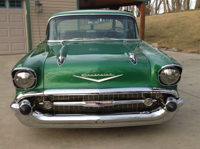 TO START OFF WITH . HIS CAR IS MY UNCLES CAR AND I AM LISTING IT FOR HIM. SO YOU MAY WANT TO TALK TO HIM TO FIND OUT MORE INFO ON THIS CAR. nbsp; ----- THIS IS WHAT I KNOW ABOUT THIS CAR IT IS A VERY BEAUTIFUL CAR IN EVERY WAY YOU LOOK AT IT. ND PICTURES DONT DO ANY JUSTICE. I AM GOING TO DO MY BEST TO GET SOME BETTER PICS FOR YOU TO SEE. --IT HAS ITS ORINGINAL DRIVE TRAIN MATCHING NOS. CAR . HIS CAR HAS HAD A FRAME OFF RESTORATION IN THE PAST. ND EVERY THING I MEAN EVERYTHING HAS BEEN DONE TO THIS CAR EVEN DOWN TO THE GLASS. it STILL CARRIES ITS ORINGINAL METAL. ND INTERIOR NOT 100 PERCENT ON THE INTERIOUR BUT THE INSIDES WAS JUST THE WAY THEY ARE NOW WHEN HE PURCHASE IT OTHER THEN THE CARPET BEING REPLACED AND LOOKS BRAND NEW. - IT HAS THE CONTINENTAL PACKAGE AND CAME FROM FACTORY THIS WAY. nbsp; THE UNDER NEATH IS JUST AS NICE AND SHINNG AS THE OUTSIDE. UST HAVE TO SEE THIS IS A MUST SEE MUSCLE CAR. ND ONE OF THE MOST SAUGHT AFTER 57 CHEVYS OUT THERE. nbsp; THE 57 HARD TOP. T IS A 2-DOOR HARD TOP BELAIR AND A VERY NICE CAR INSIDE AND OUT. UNS GOOD SOUNDS GOOD. ED AND BLACK INSIDE AND BLACK EXTERIOUR. E HAS ADDED AIRCONDITION TO THE CAR WHICH IS A PLUS . AND HAS A BUNDLE OF CASH INVESTED IN THIS CAR. nbsp;------ SO BID ACCORDINLY FAIR-------- THIS ISNT A LOW END AUTOMOBLE. OR MORE INFO ON THIS CAR . CALL HIM AT 1-606-316- 0421 - OR 1-606-782-2576 PLEASE BID WITH CONFIDENCE. ND I RESERVE THE RIGHT TO SHUT THE AUCTION DOWN AT ANY GIVEN TIME FOR IT IS FORSALE LOCAL