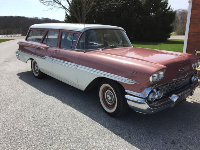1958 Chevrolet Brookwood Station Wagon This wagon is a good driver quality car with lots of the original integrity. This is an original numbers matching motor. trans and rear end. The center drive shaft bearing has recently been replaced . This car also has the typical characteristics of an old classic car re: leaks. dings etc. This is NOT a new or restored car. The radio does not work and the windshield wiper switch has a toggle switch in line to turn it on and off. However with that being said this car is a good solid car that is lots of fun to have and to drive . Any questions please ask. Thank you