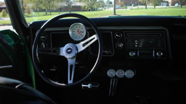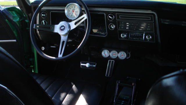 1968 ChevelleBeautiful paint job in Chevy rally green metallic with base coat/ clear coat. Interior has new seat covers foam. oor panels. counsel and shifter. new bumpers but still have original bumpers. still in good shape. New light bezels looks like new. Has the 327 . 30 over. Aluminum world 2. 02 heads Keith Black flat top 10 to 1 pistons runs on pump premium gas. Nasty street able cam. Really lobes out. About 1500 miles since rebuild. . About 425 hp. She’s quick. Turbo 350 with shift kit and 2500 stall gear. ten bolt rear with Eaton carrier posi 3. 73 gears. New adjustable boxed control arms $1. 00. 00 with front and rear sway bars . nd also new front end big block springs in front strange rear cover with bolts for carrier. ith new rear boxed adjustable control arms No wheel hop really plants the rear end to street also new with big block springs. 15X8 vette rallies on all corners retains all original metal panels no patches - except steel cowl hood. Power steering/brakes. turn-key show car. always thumps up. . I know I left some things out. please email me with any questions. Car is for sale locally to reserve right to sell. hanks again. . Only made it to 5 shows this summer. nbsp; . Have 68 am delco radio working. ew interior pillar trim and chrome parts go behind front door arm rests. attery tray. till in boxes. ll the original looks great but just wanted to replace to look better. Owners manual and other brochures to go with for car shows also era correct 8 track player not installed. Bid with confidence Will not be disappointed. hinking of retiring not sure still to young 58. but not sure . The 68 was the new body style after 67 and GM went on strike 1968 that year Did not get a lot of them built that year Thanks for looking 319-286-9313 please leave message about car so i can get back to you. hanks Bill http://youtu. be/TOwI3DtZekI copy and past this in your browser to see it running