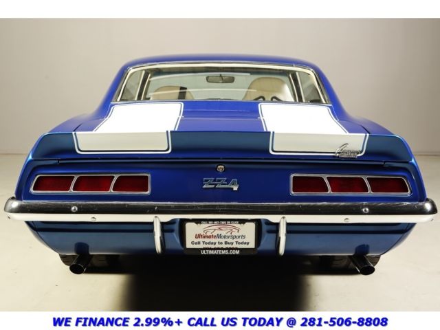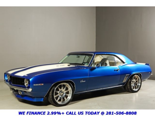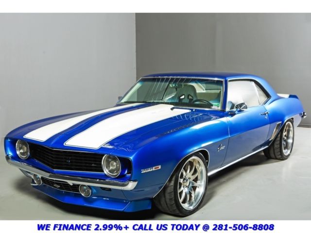Ultimate Motorsport Presents 1969 Pro Touring Chevrolet Camaro Award Winning Excellent Running and Driving Pro Touring Camaro with Auto Cross and Good Guys Events wins to back it up ! Professionally built and well sorted out. this is a turn key car that can be driven anywhere. GM Performance ZZ4 Chevrolet Crate Engine w/Comp Cams Roller Valve Train Aluminum Heads. Aluminum Radiator. Oil and Power Steering Cooler. Tremec TKO 5 Speed Transmission with Performance Clutch. Detriot Speed Sub-Frame Connectors (Welded In ) Hotchkis Front and Rear Springs With Del-A-Lum Bushings Bilstein Shocks. CPP Tubular Front Upper and Lower a- Arms with Del-A-Lum Bushings. Proforged Ball Joints. AGR Fast Ratio Power Box with Corrected Steering Geometry. Idiot Tilt Steering Column. MOMO Tuner Steering Wheel. CPP Front and Rear 13’’ Disc brakes w/Cross Drilled Slotted Rotors 3. 55 Posi Traction Rear End with Sway bar. Smoothed Firewall and Detroit Speed Front Balance Cover. Rushforth Wheels “Rated X” 18x10 Rear and 18x9 Front. Marquez design Billet Tail Lights and Side Emblems and markers. Sport Bucket Seats with 5 Point Harness. Sport Comp Gauges. BEAUTIFUL LEMANS BLUE METALLIC 1969 CHEVROLET CAMARO PRO TOURING WITH 9K ORIGINAL MILES PEACE OF MIND ! BUY WITH CONFIDENCE !! 45+ PICTURES BELOW MUCH MUCH MORE SEE IT TO BELIEVE IT !!! Beautiful LEMANS BLUE METALLIC on WHITE LEATHER WITH BLACK TRIM Interior!! Low Buy It NOW or Make us an Offer NOW!! 100% Positive Feedback OUR BUY IT NOW $ 62. 00 WOW ! WHAT A DEAL !!! WONT LAST LONG AT THIS PRICE !!! CALL US TODAY AT 281-506-8808 If You are Looking for a CHEVROLET CAMARO PRO TOURING with all the options with LOW MILES. You Don't Have to Look any Further!!! DON'T SLEEP ON THIS ONE! NOTE: JUST LIKE ANY USED VEHICLE FEW VERY MINOR NICK NACKS DUE TO NORMAL WEAR AND TEAR AND ROAD DEBRIS. REMEMBER: YOU ARE BUYING A TOP LOADED USED VEHICLE IN CLEAN CONDITION NOT A BRAND NEW ONE! Bid with Excitement & Confidence!!! Only at ULTIMATE MOTORSPORT !! Good Luck & Happy Bidding!!! FOR ANY QUESTIONS FEEL FREE TO CALL US AT 281-506-8808 So. If you are in the market for a LATE MODEL. VERY AFFORDABLE CHEVROLET CAMARO PRO TOURING. then you owe it to yourself to take a closer look LOW BUY-IT-NOW or MAKE AN OFFER!!! WE FINANCE ! APPLY ONLINE FOR AUTO LOANS AS LOW AS 2. 99% FOR ANY QUESTIONS OR CONCERNS FEEL FREE TO CONTACT @ (281) 506-8808 or email sales DOOR TO DOOR SHIPPING AVAILABLE ASK FOR A QUOTE ! We Export For Canadian Customers Email: sales@ultimatems. com Call 281-506-8808 Visit 10311 Altonbury Lane Houston TX 77031