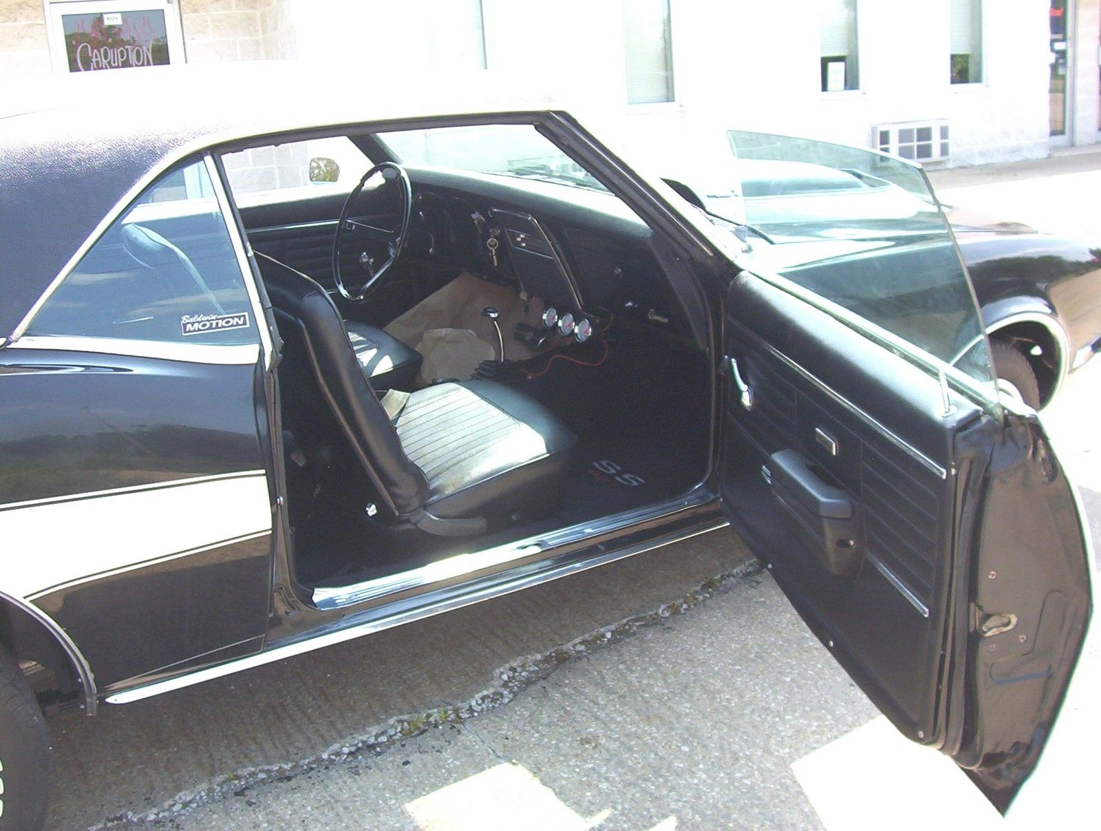 1968 Camaro SS 427 this car has been restored frame up Custom painted by the Coachman Hand rubbed Black lacquer paint with clear lacquer and white Motion style stipes in lacquer under clear new body panels Painted under chassis in black sub frame conectors installed - weld in new fresh rebuilt motor - RARE-427 tall deck -4 bolt mains- twin carbs- electric pump Motor serial TO087AKT HEI ignition for easy start -hooker coated headers with 3 inch exhaust to rear rare 1972 motor new bearings rings and gasket set installed-howards solid lifter cam kit - no miles on car since restored hood scoop - baldwin motion style fibre glass installed- hood pins complete new black interior - bucket seats and floor shifter new black vynal top- new chrome new tires new brakes with front disc- power big block sway bar installed rebuilt turbo 400 trans with shift kit tac and gauges custom built frame up for somebody that wants a SWEET RIDE -enjoys power and easy to drive 3 years to build it ! feel free to call me or text me about this car - 216 339 7117 Thanks for lookin Jeff