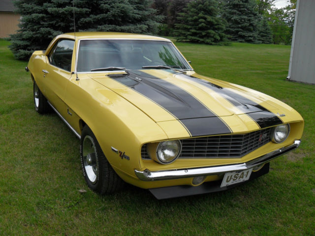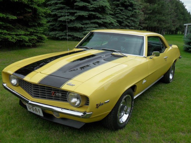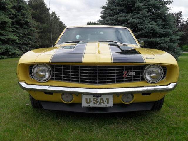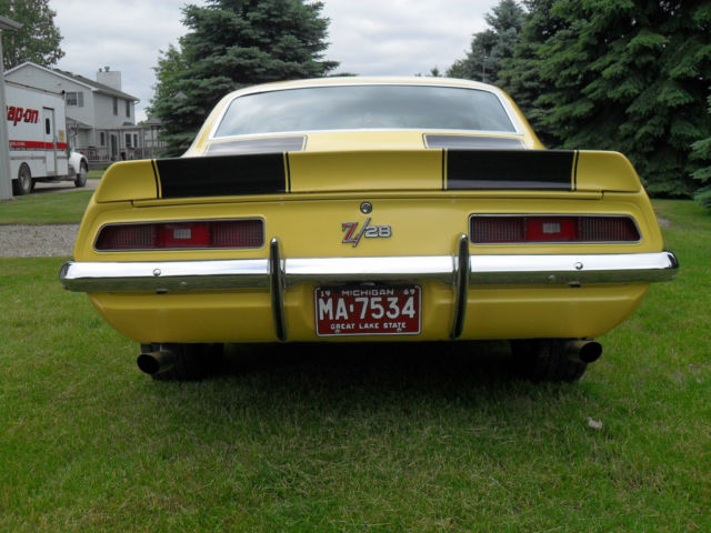 1969 Z-28 CAMARO X-77Daytona Yellow w/black stripes 302 DZ 4 Speed hurst shifter 12 Bolt 3:73 Posi. Cowl hood Spoiler B. F. Goodrich T. A's Black standard InteriorComfort grip wheel Complete RestorationRuns & drives excellantWood Dream Cruise Logo Car 20112K Deposit Due with in 48 hrs of auction closeBuyer Responsible for ShippingDO NOT MESSAGE. ANY QUESTIONS CALL (810) 614-2071