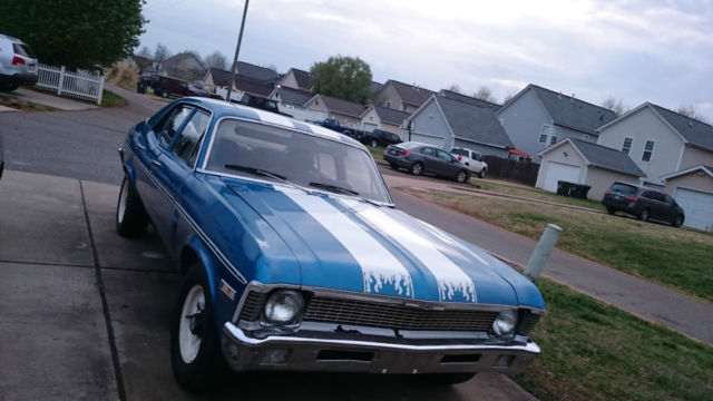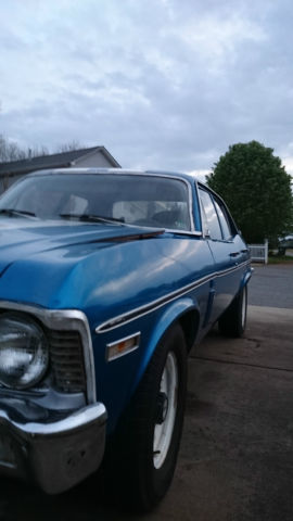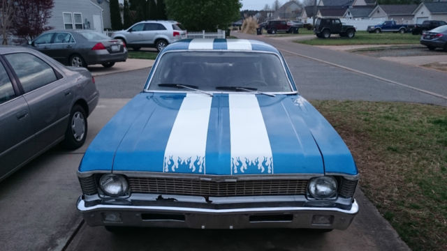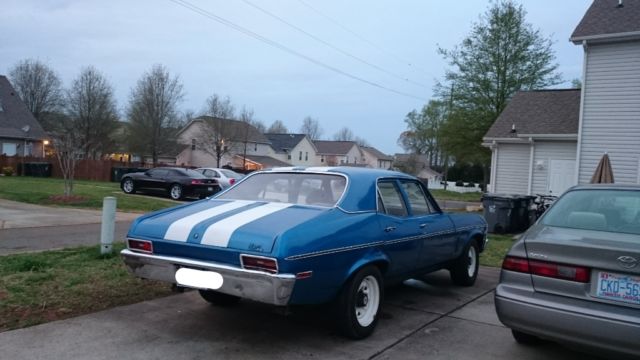 I had an ebayer flake on me. Please remember I still have to pay the eBay fees if you win the auction. DON'T BID UNLESS YOU ARE SURE. There are less pictures this time because it was raining when I took those originally and they came out terrible. Please email me at amidvalor@Gmail. com for more pics or video. Thanks! Nova will be for sale locally here in Huntersville NC. so I reserve the right to end this auction at any time. It is a South Carolina title so no Notary is necessary for title transfer. The last thing on my mind was selling this car. I have a very huge passion for Novas. My dad bought me one to restore when I was 13. and I scraped and saved to get it in great running condition with a 396 and full SS clone badging. all my money went into it for the next five years. just to have it stolen from the body shop. Now that I'm an adult this was going to be my redemption project. so yes it is in project condition. When I committed to buying this car and put a down on it. I had no idea that I would be getting married soon after. My wedding is May 10th. and I have to pay for the whole thing myself given the financial situation of my parents and my bride to be's parents. So the Nova has to go. at least until I can afford to get another one. one day. This car has a lot of potential to be an amazing daily driven sleeper! In the unlikely event you want to donate towards my wedding. here is the link: honeyfund. com/wedding/maxandleah The Good: Two speed powerglide tranny good for drag racing Chevy 350 in good running condition. Headers/flowmasters Brand new distributor w clear cap Brand new battery Oil just changed with Lucas oil Synthetic/ Castrol GTX High Mileage Rebuilt Alternator from a 1970 Buick Brand new walmart battery New battery terminals/cables New spark plug wires The floor pans in the cab have very minor surface rust. and I do mean minor. if you look under the car you can see that it doesn't go all the way through. The Bad: The choke is screwed up on the Carburetor isn't functioning properly. so when you first cold start the car. you have to keep giving it a little gas for about 3 minutes or so for it to idle right. But then it runs fine. I had planned to grab an Edelbrock 700cfm from craigslist or something with an electric choke. but since I'm not keeping it. I can't afford to put any more money into it. The gasket on the tranny pan needs to be replaced. But its not gushing fluids or anything. Gasket between the headers and flowmasters needs replacement. Headers look to be from a truck since they don't tuck as nicely under the nova like my hooker headers did on my old Nova. The timing isn't perfect. but hopefully I will be taking care of that this weekend. The floor shifter was obviously put on by some sort of cross-eyed dingbat. The Ugly: The TRUNK has a very rusted floorpan Even though the paint Job looks ok on the car. there was some very shotty body work done. and the rear quarters above the wheels are clearly in bad shape. The interior is crap. period. The seats look ok. but they are not original. they look like some sort of SUV seats. The fan is stuck on the on position. There is no carpet. The dash pad is cracked. There is no headliner. The hood latch is tweaked and needs to be adjusted. THERE IS NO RESERVE! NOVA IS LOCAL PICKUP ONLY. I WILL NOT SHIP THIS CAR ANYWHERE. I SUGGEST GETTING IT TOWED UNLESS YOU ARE LOCAL EVEN THOUGH IT DOES RUN I HAVE NO DRIVEN IT LONG DISTANCE. Just a reminder. this Nova is a project and is being sold "AS IS" and I will not be accepting returns. Thanks for looking!